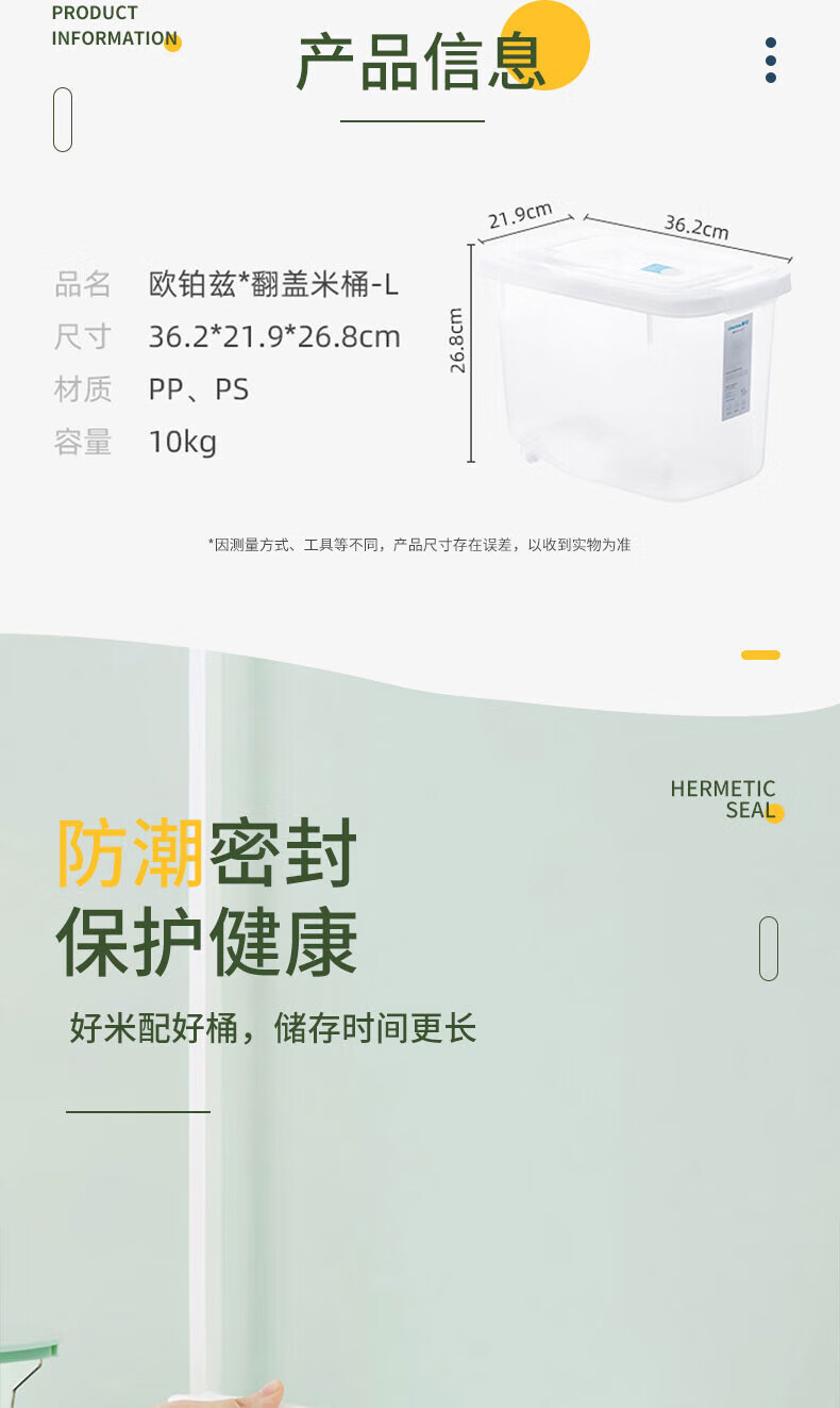 Camellia Rice Bucket Rice Storage Box Antibacterial Flour Bucket Rice Cylinder Storage Box Rice Storage Bucket Noodle Cylinder 20Jin Jin is equal to 0.5kg packed