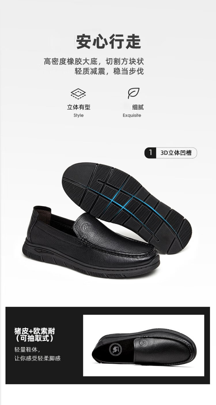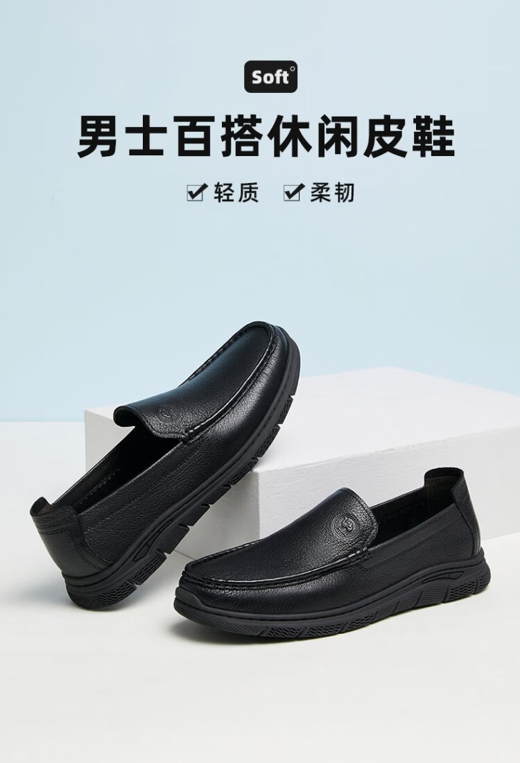 Camel Versatile British Leather Shoes Men's Business Casual Shoes Soft Leather Soft Sole Shoes PMS2210008 Black 42
