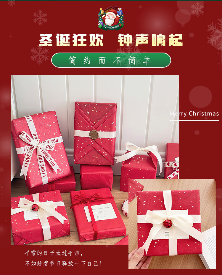 DOROCH red gift wrapping paper with ribbon bell, New Year's Day annual party raffle gift, Christmas New Year gift bouquet
