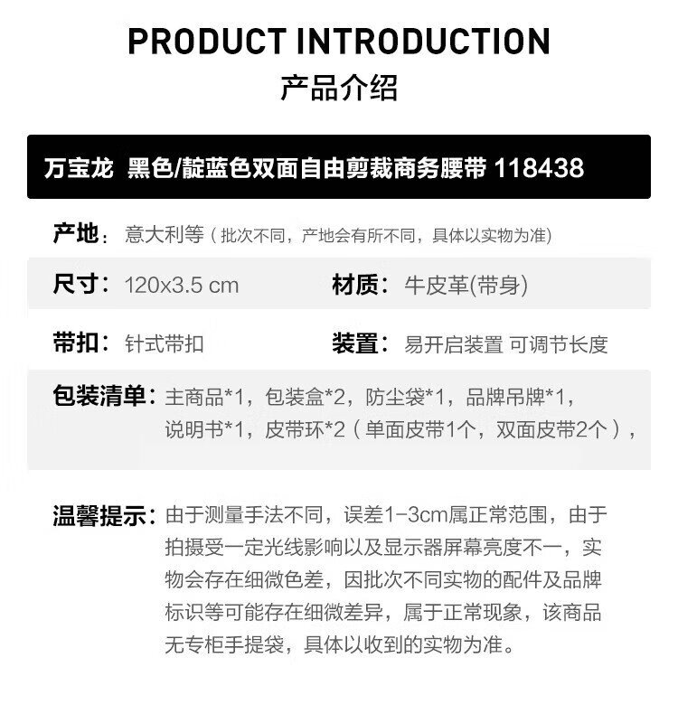 Montblanc MONTBLANC black/indigo double-sided free-cut belt/belt 118438 gift