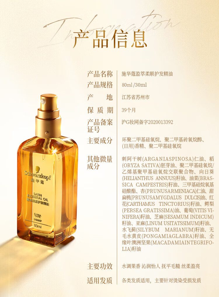 Schwarzkopf Yingcui Tough Hair Care Essential Oil 80ml (Lightening Bottle, Nourishing, Anti-frizz, Smooth, No-Rinse, Non-greasy, Moroccan)
