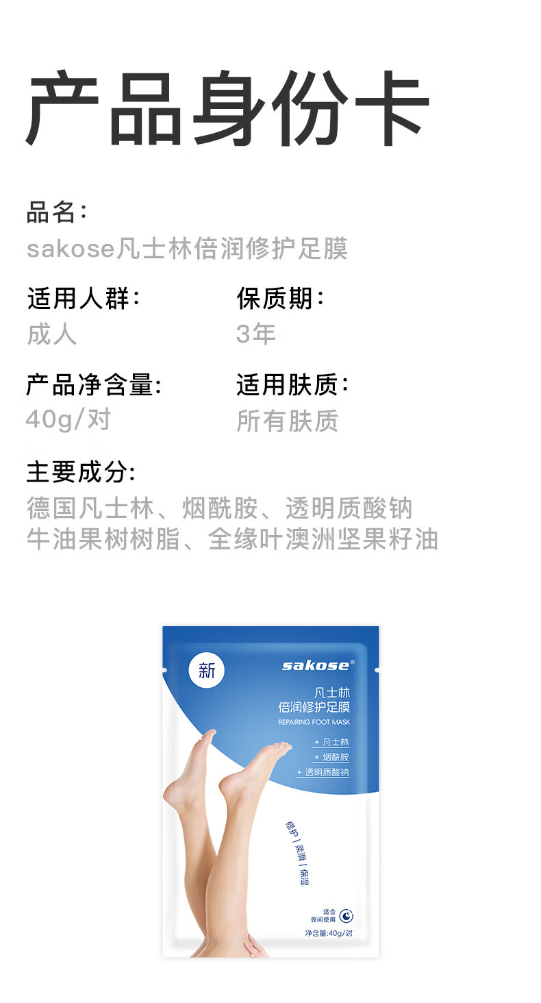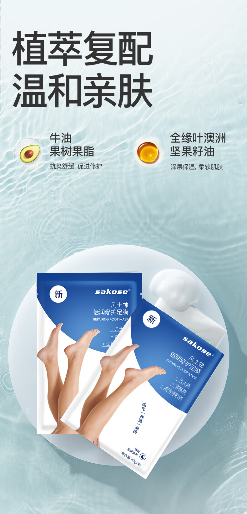 Sakose Vaseline moisturizing and repairing foot mask, a total of 8 pairs of foot masks, exfoliating dead skin, sloughing, rejuvenating, beautifying feet, cracked heels