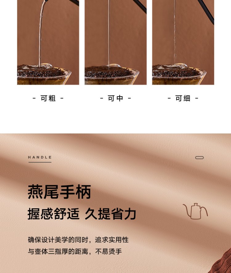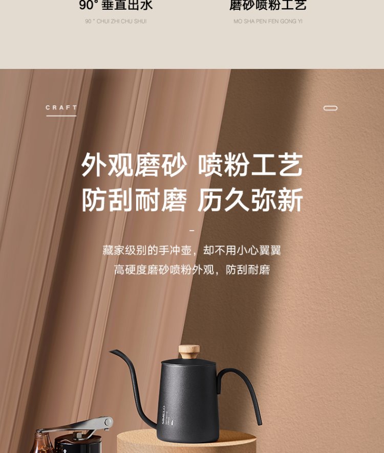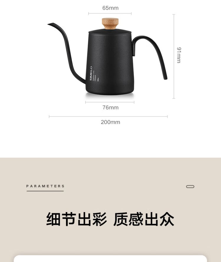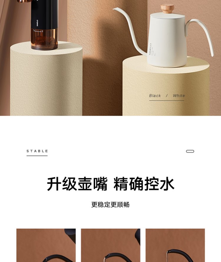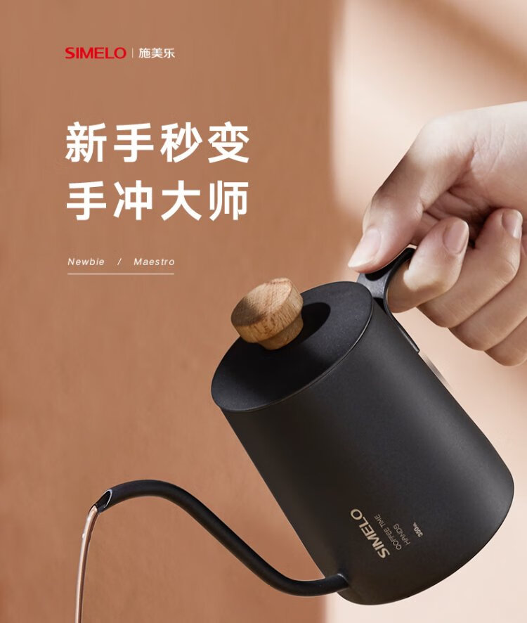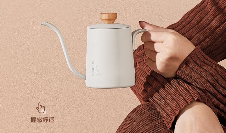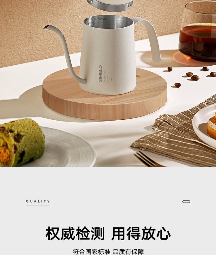SIMELO Mocha hand-brewed coffee pot, household ear-mounted hand-brewed coffee pot, 304 stainless steel long mouth and narrow mouth pot 350ml beige