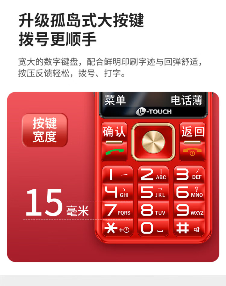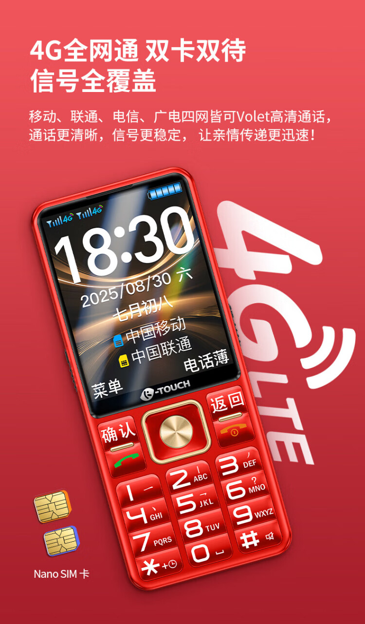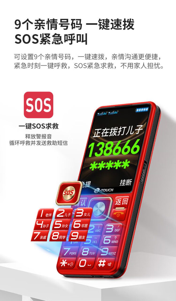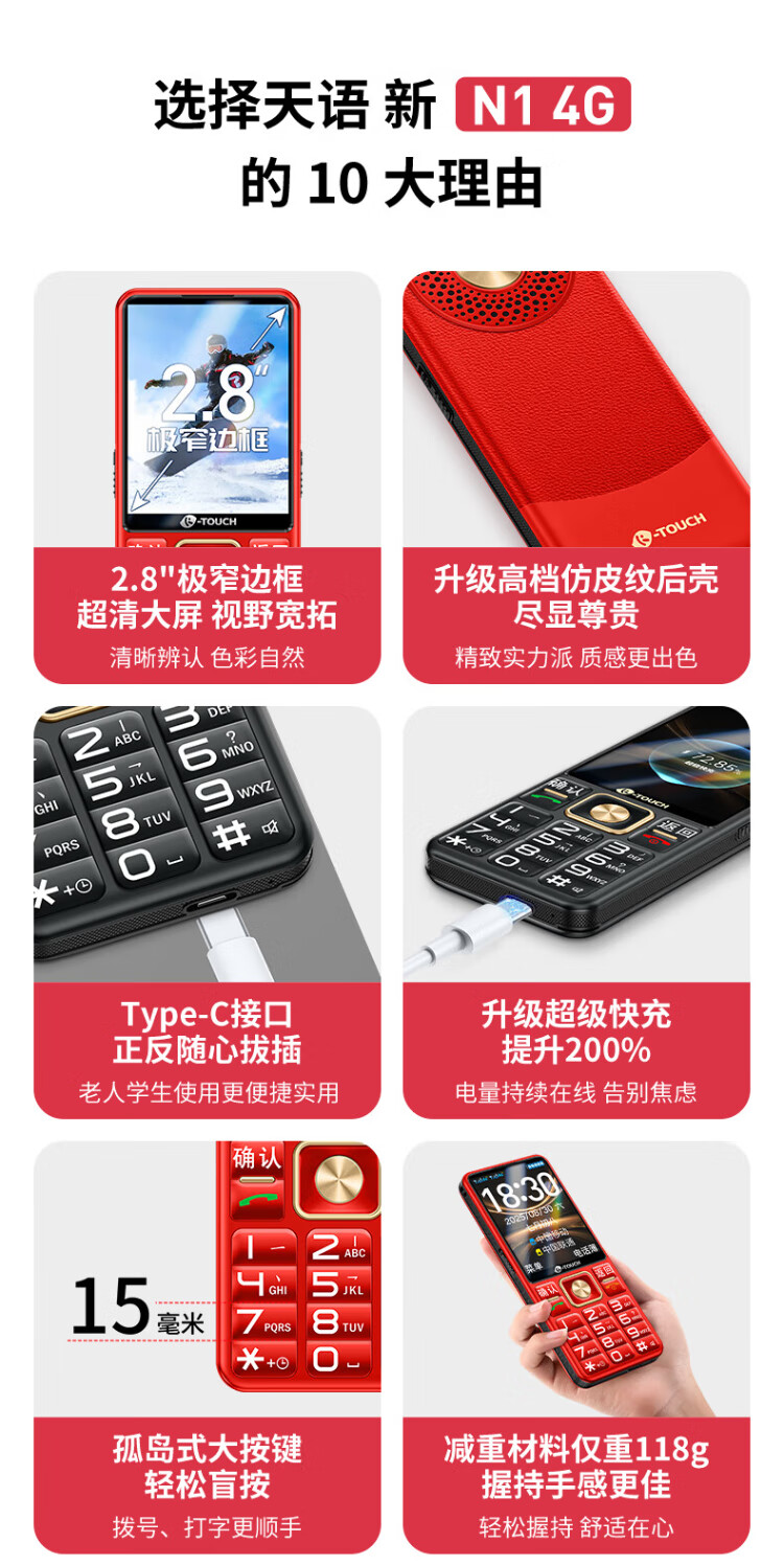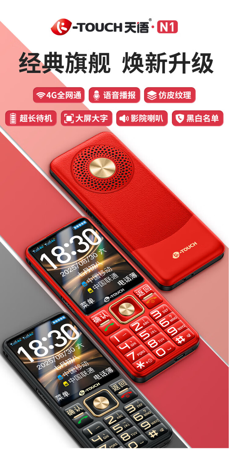 Tianyu (K-Touch) N1 mobile phone for the elderly 4G full network 2.8 large screen large speaker large battery super long standby loud sound special for the elderly student spare straight button elderly phone red