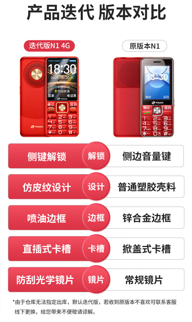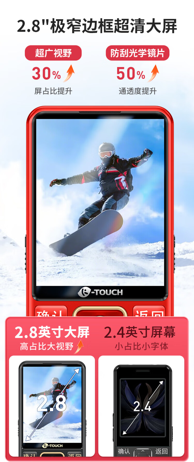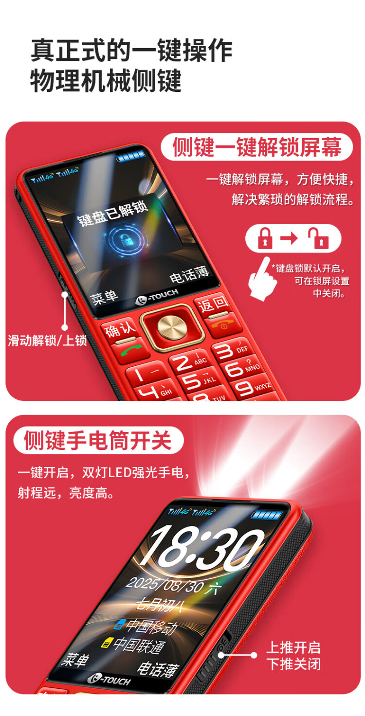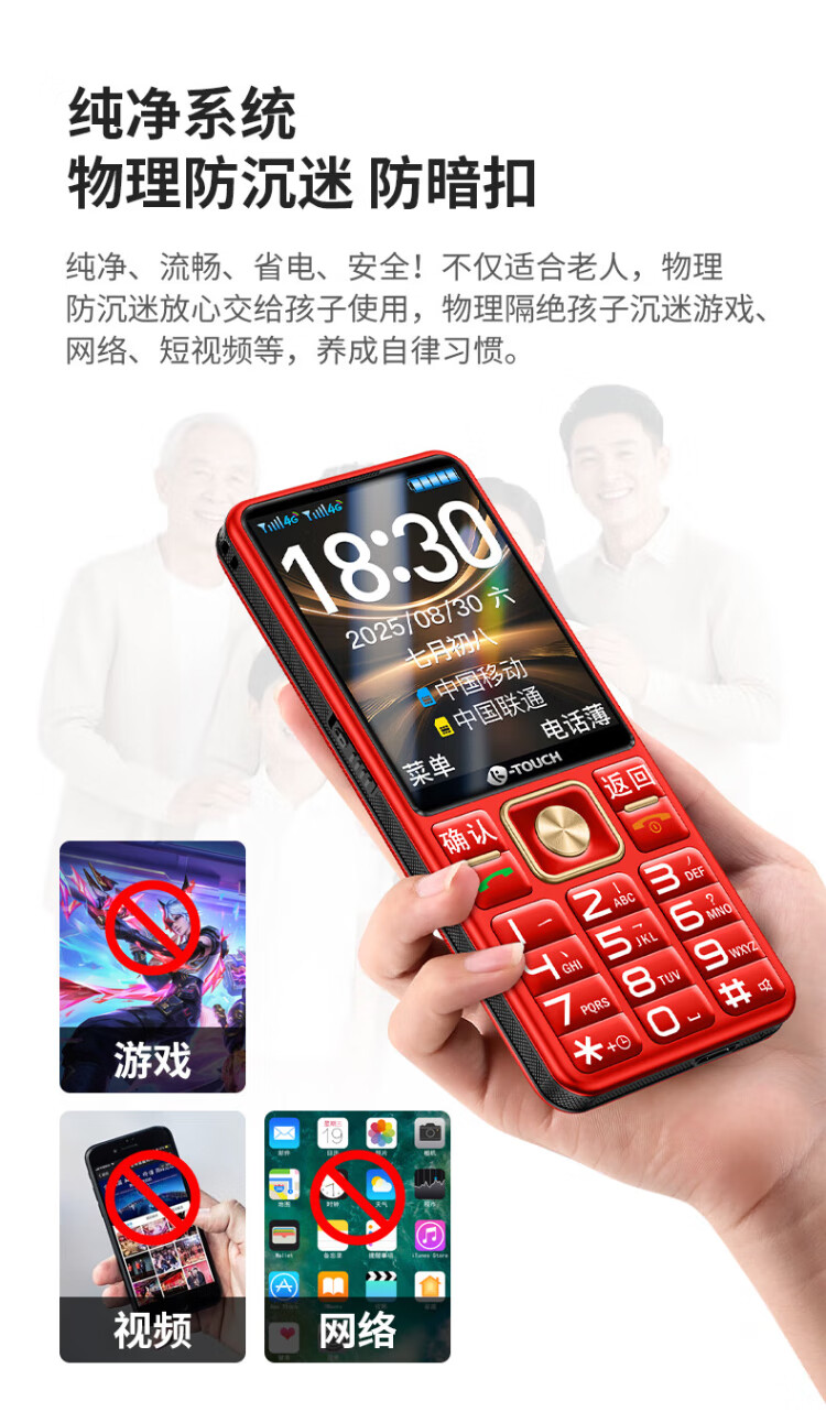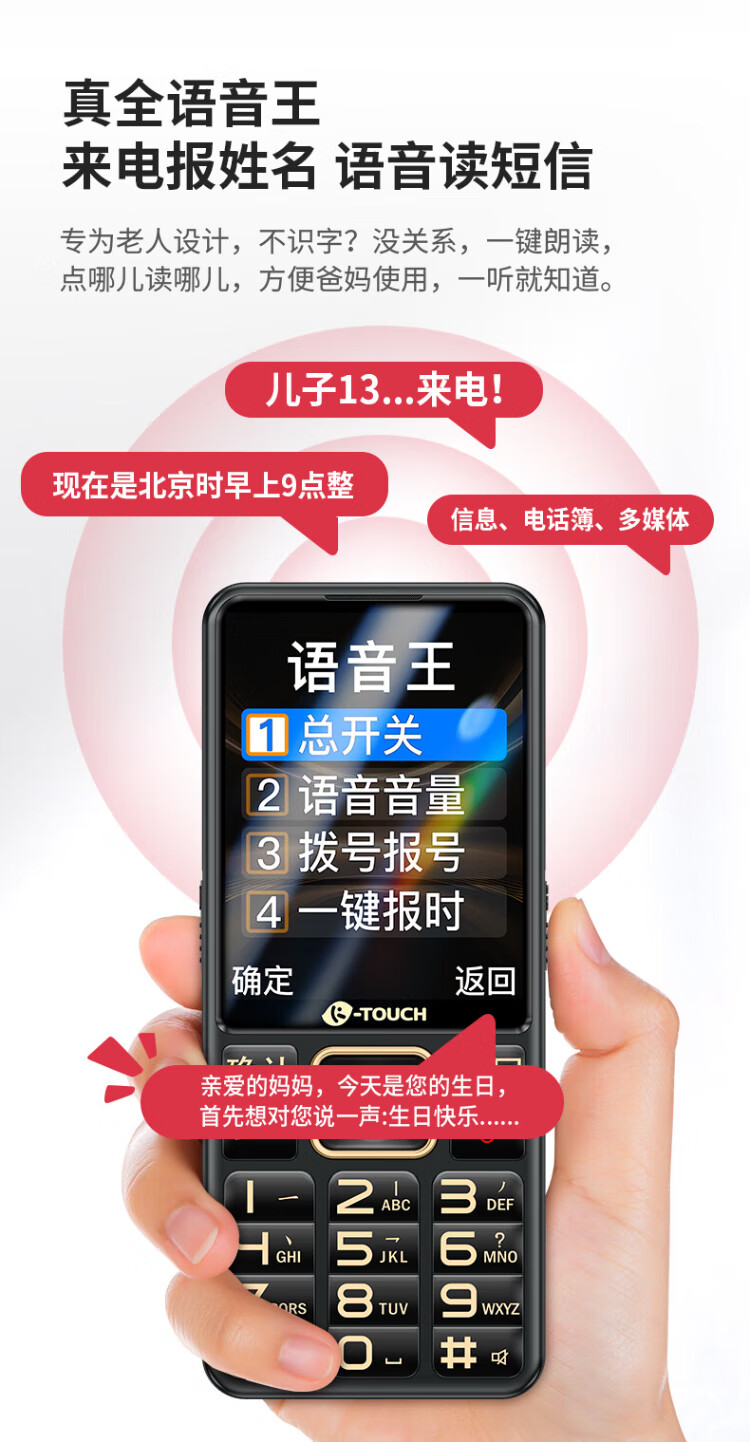 Tianyu (K-Touch) N1 mobile phone for the elderly 4G full network 2.8 large screen large speaker large battery super long standby loud sound special for the elderly student spare straight button elderly phone red