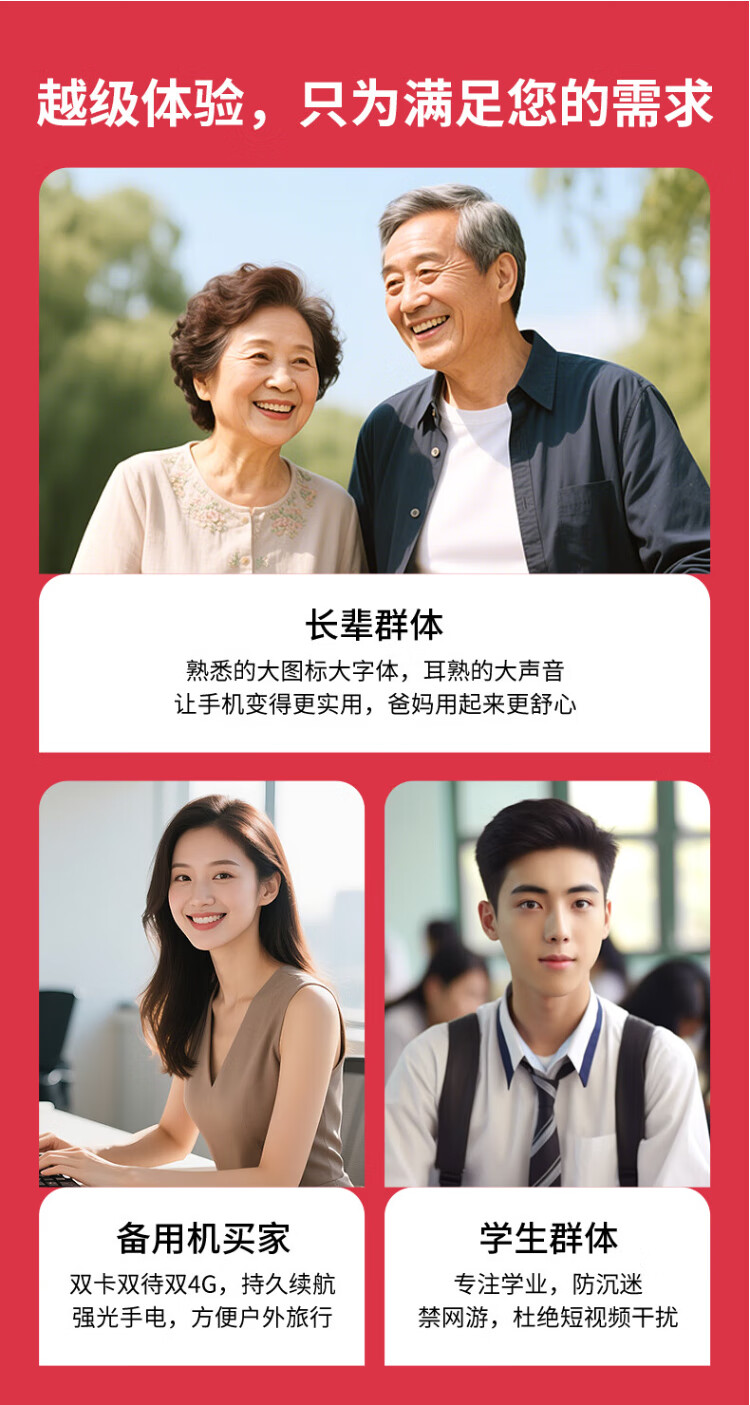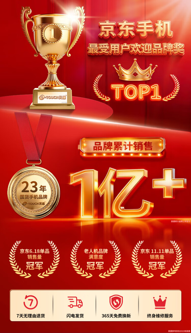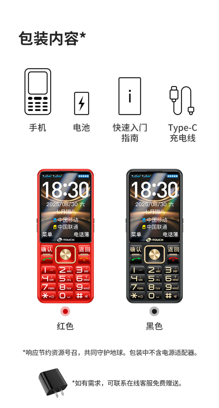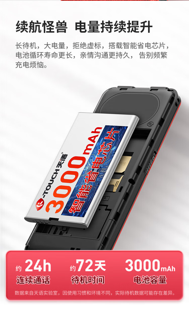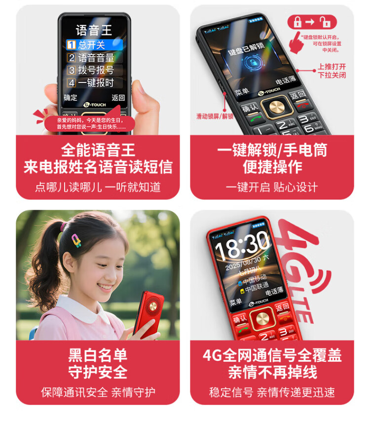 Tianyu (K-Touch) N1 mobile phone for the elderly 4G full network 2.8 large screen large speaker large battery super long standby loud sound special for the elderly student spare straight button elderly phone red