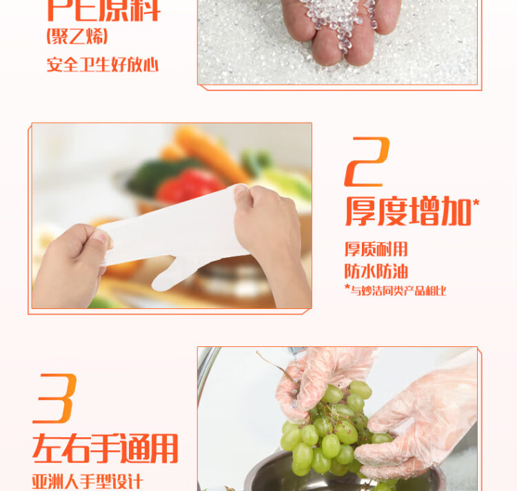 Miaojie thick disposable gloves 100 pieces * 3 packs removable thick and durable table picnic