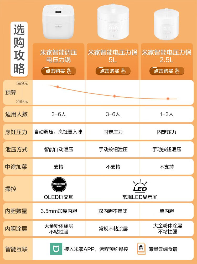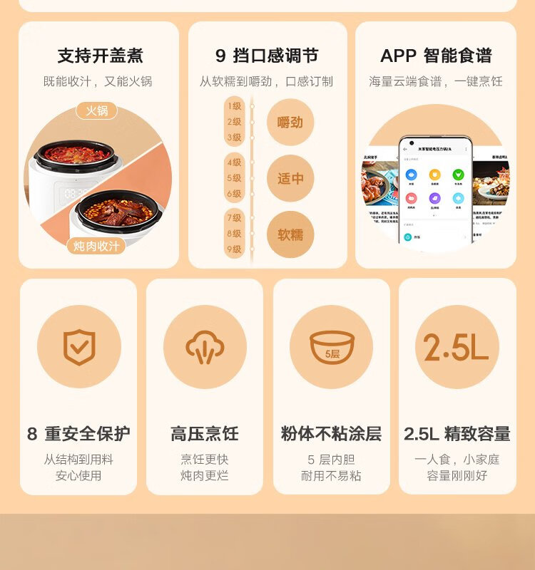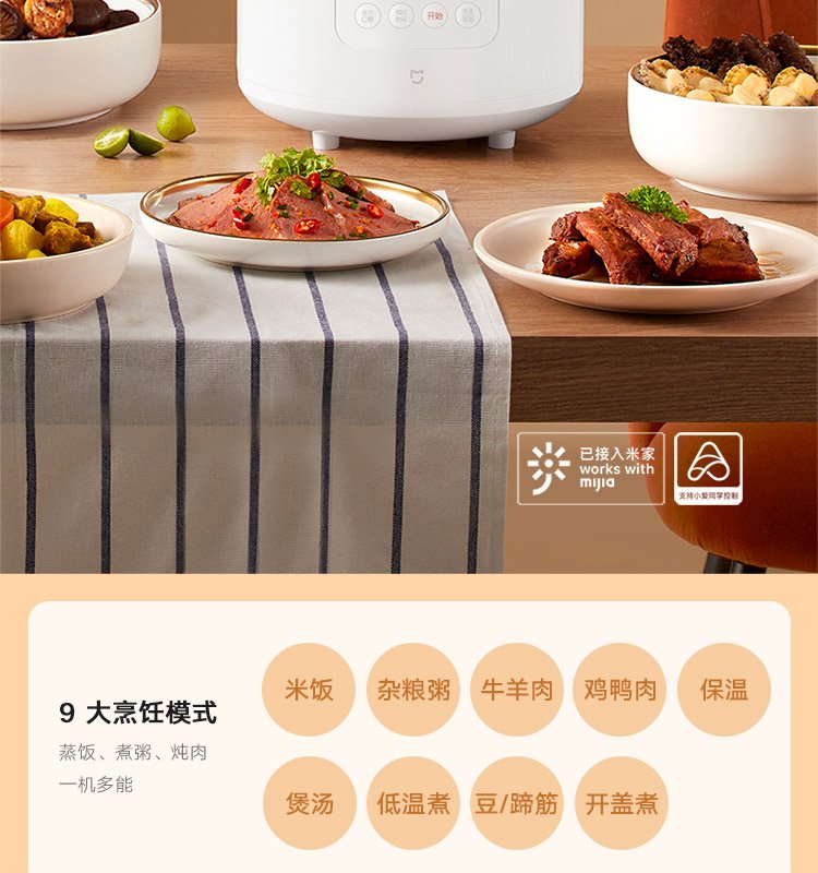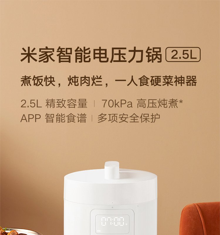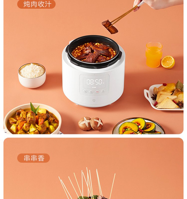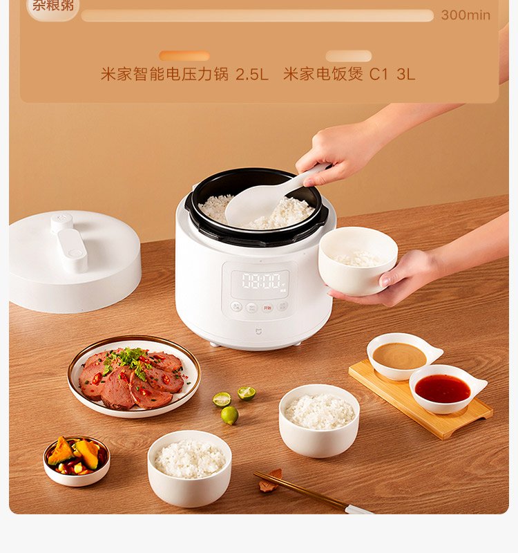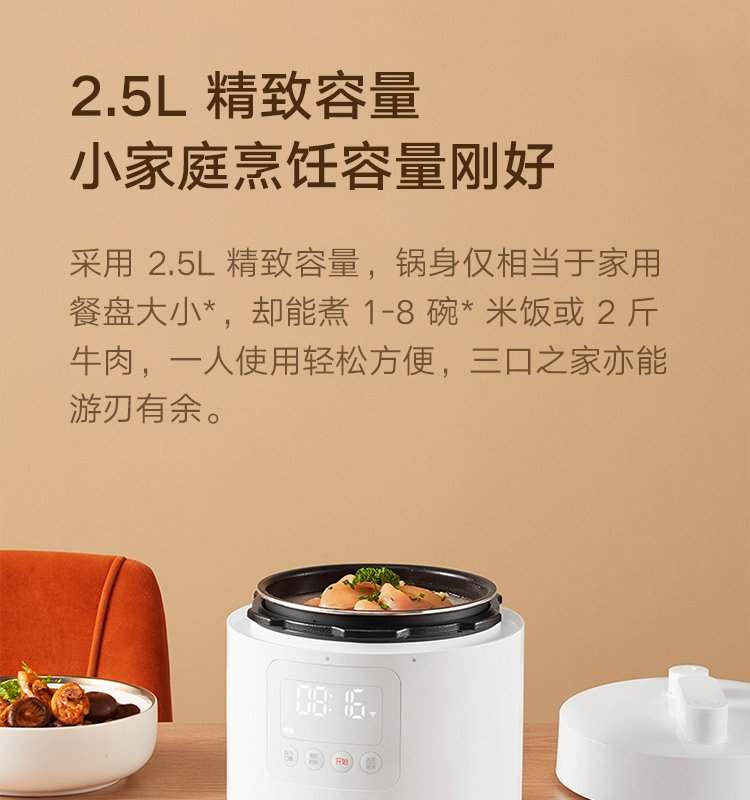 Mijia Xiaomi electric pressure cooker pressure cooker rice cooker for home use 2-3 people multifunctional electric stew pot for cooking rice and porridge non-stick pot inner pot stainless steel upper lid 2.5L