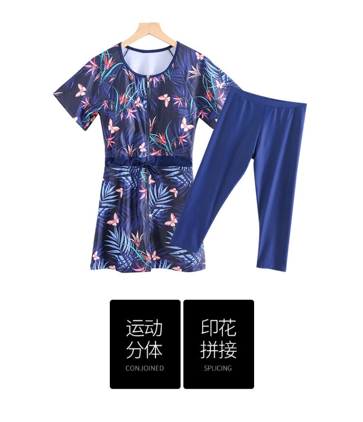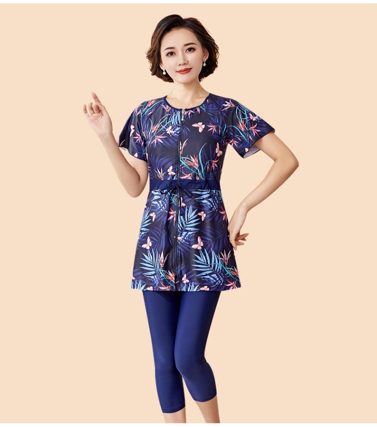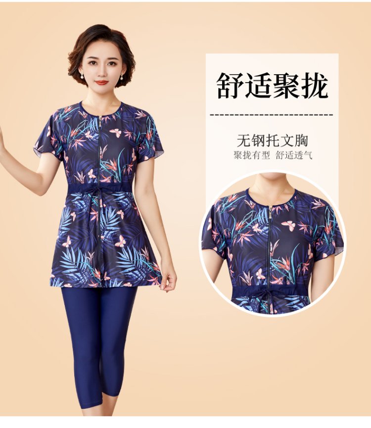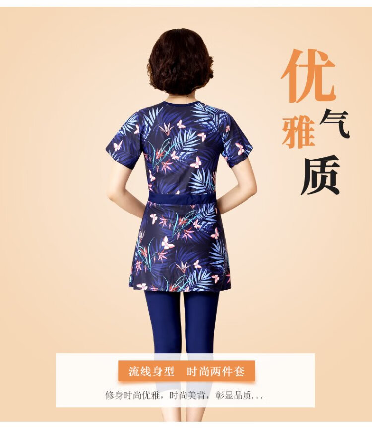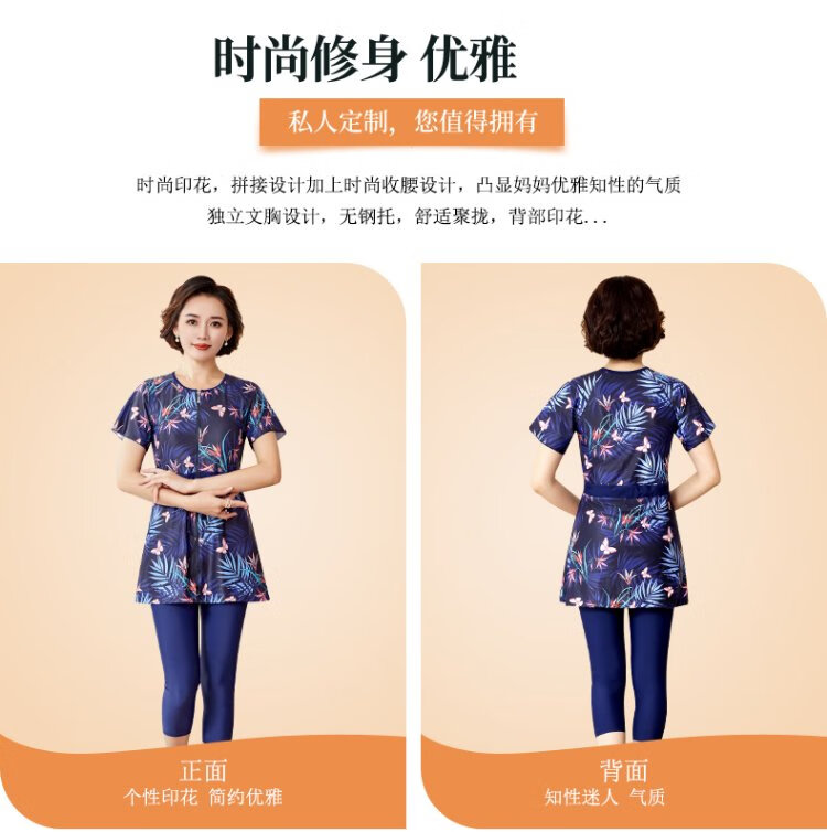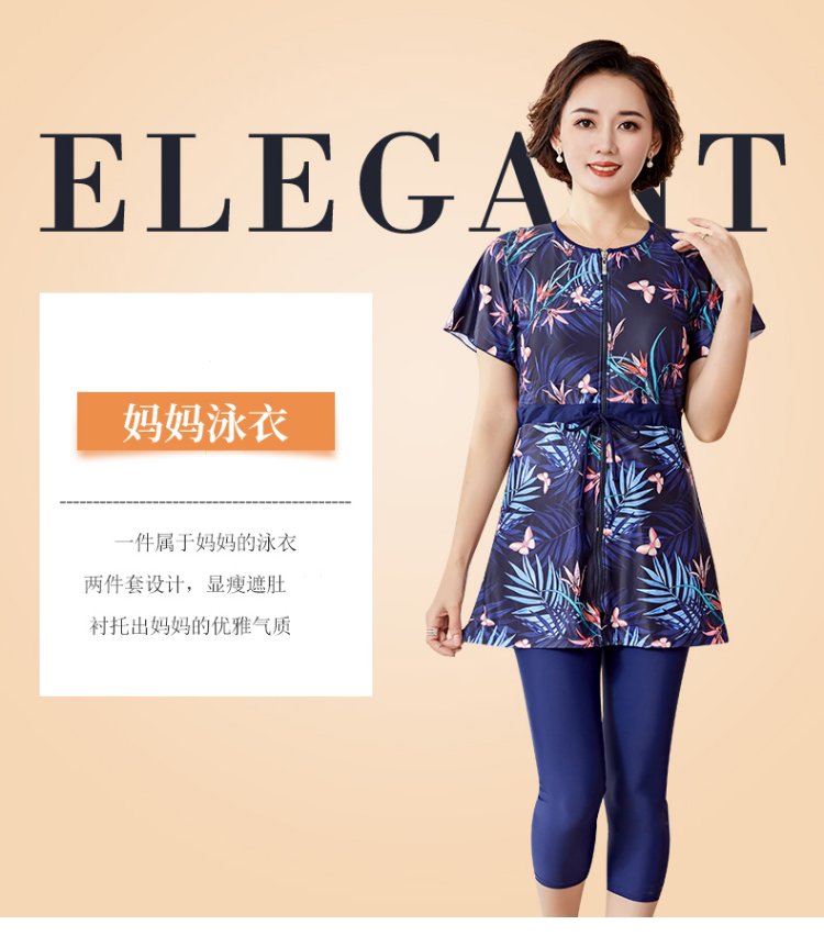 Yifu Mom swimsuit for middle-aged and elderly women, conservative split two-piece set, sports belly-covering, slimming, large size loose spa swimsuit