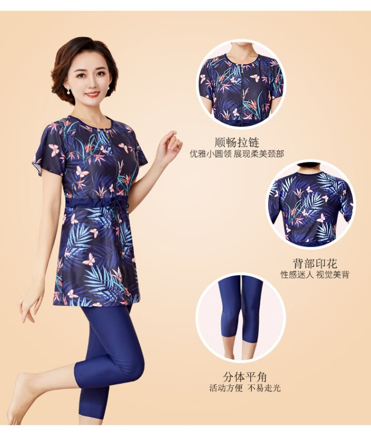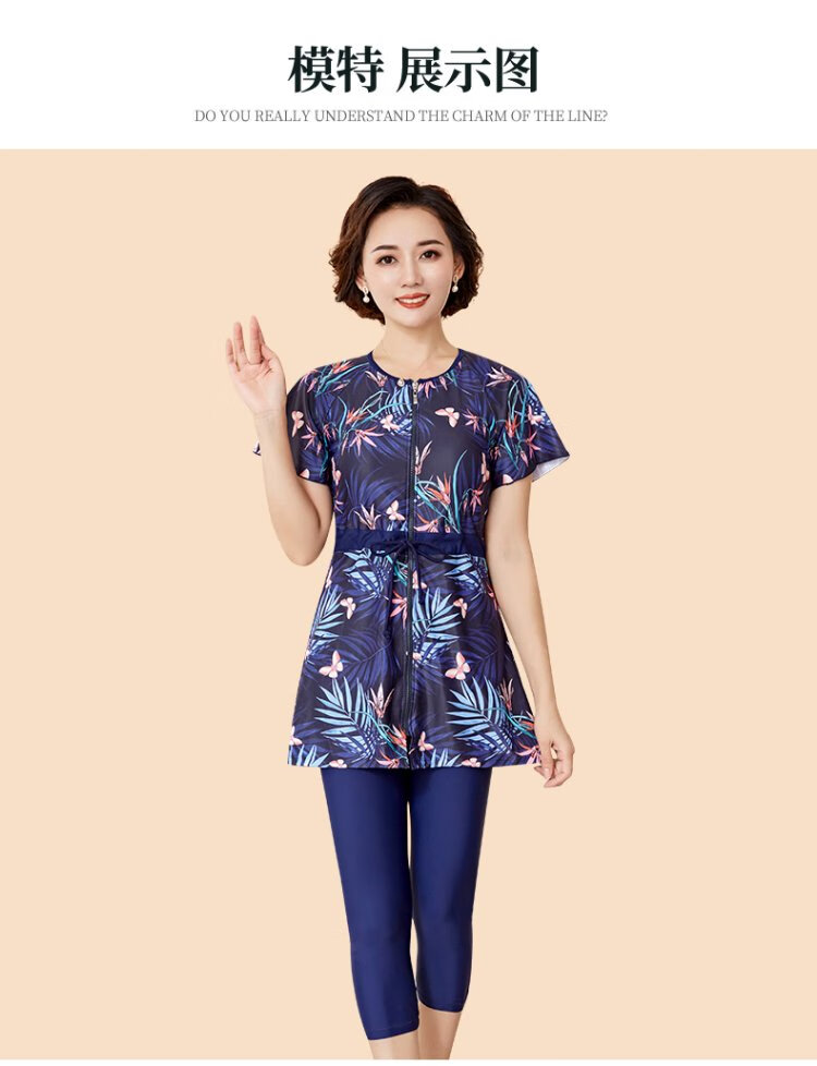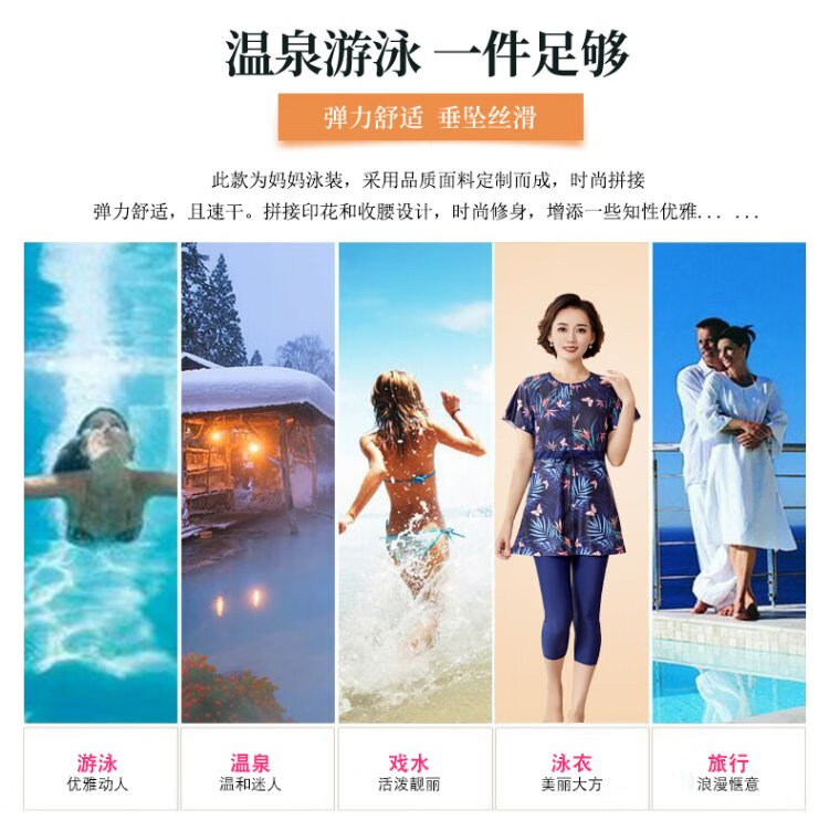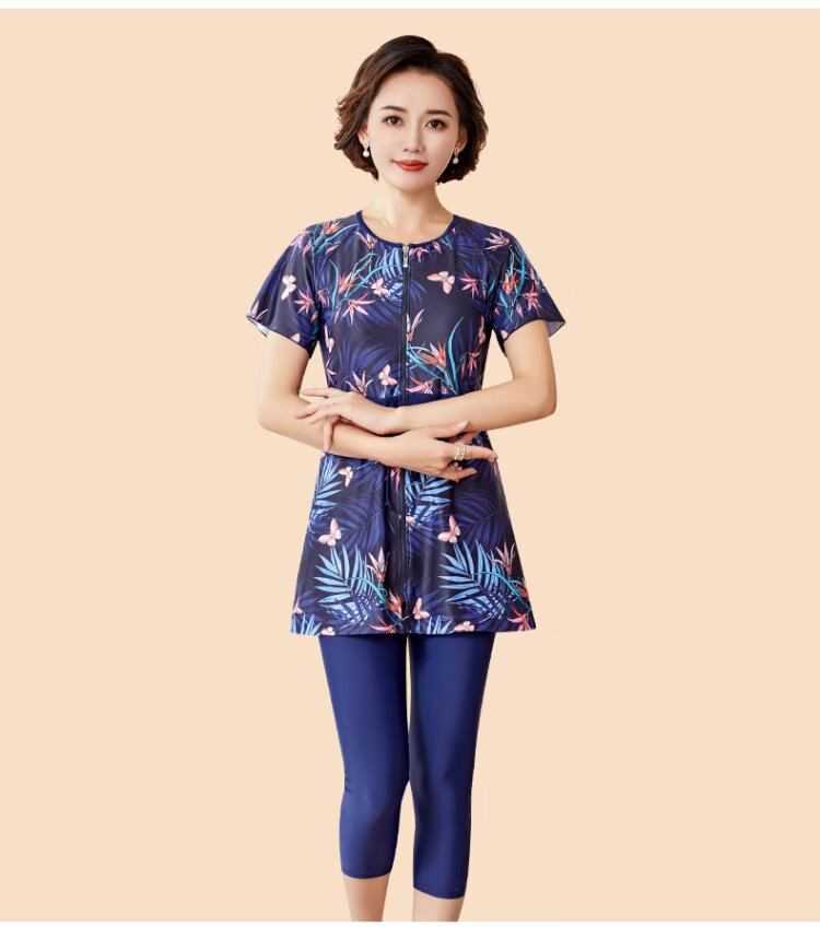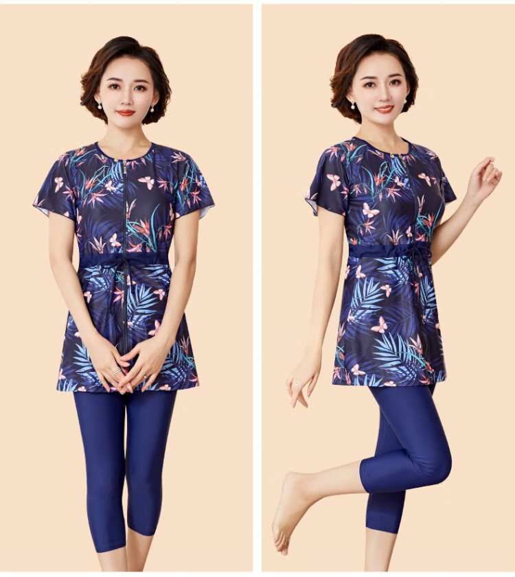 Yifu Mom swimsuit for middle-aged and elderly women, conservative split two-piece set, sports belly-covering, slimming, large size loose spa swimsuit
