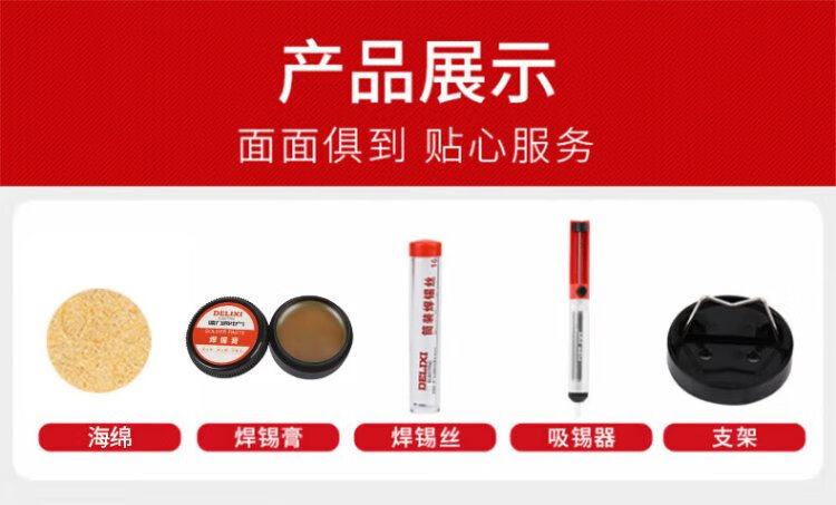 Delixi Electric soldering iron welding auxiliary 5-piece set solder paste high temperature sponge holder tin soldering wire metal solder suction device for home use