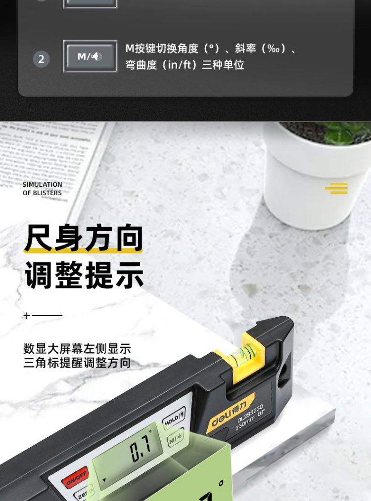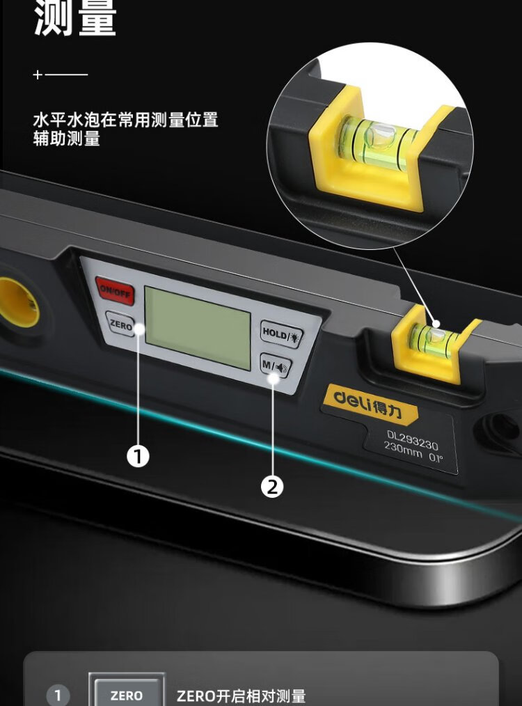 Deli 9-inch digital display spirit level strong magnetic torpedo spirit level mini portable 230mm