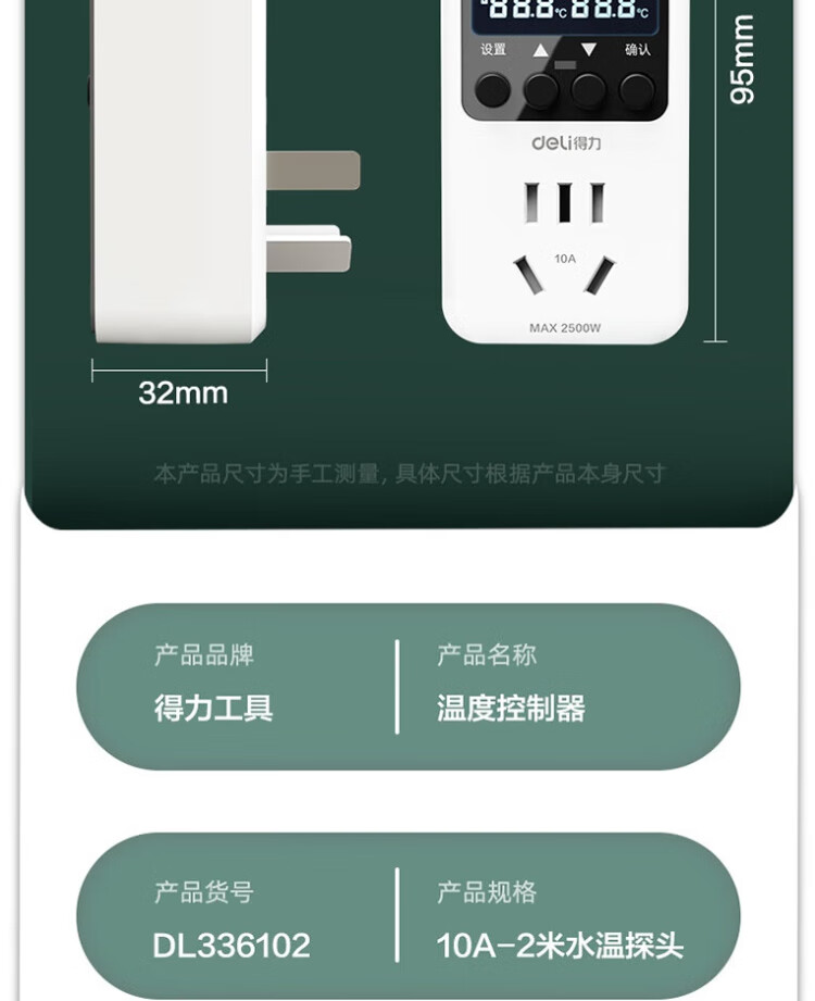 Deli thermostat digital display electronic temperature control instrument switch temperature controller 10A + 2 meters water temperature probe