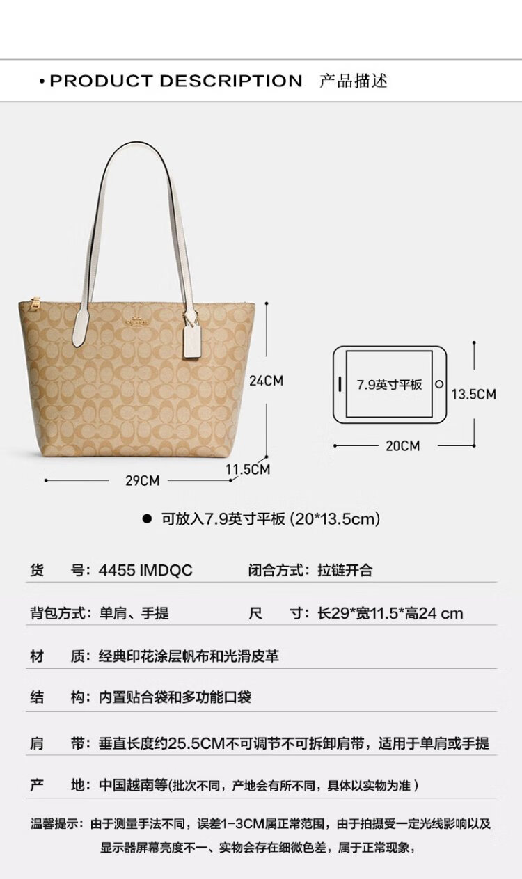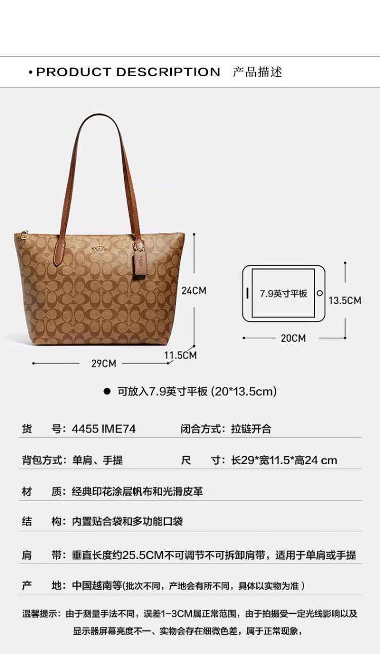 COACH brand direct supply women's bag FIONA shoulder zipper tote bag CBT18 sand yellow Christmas gift