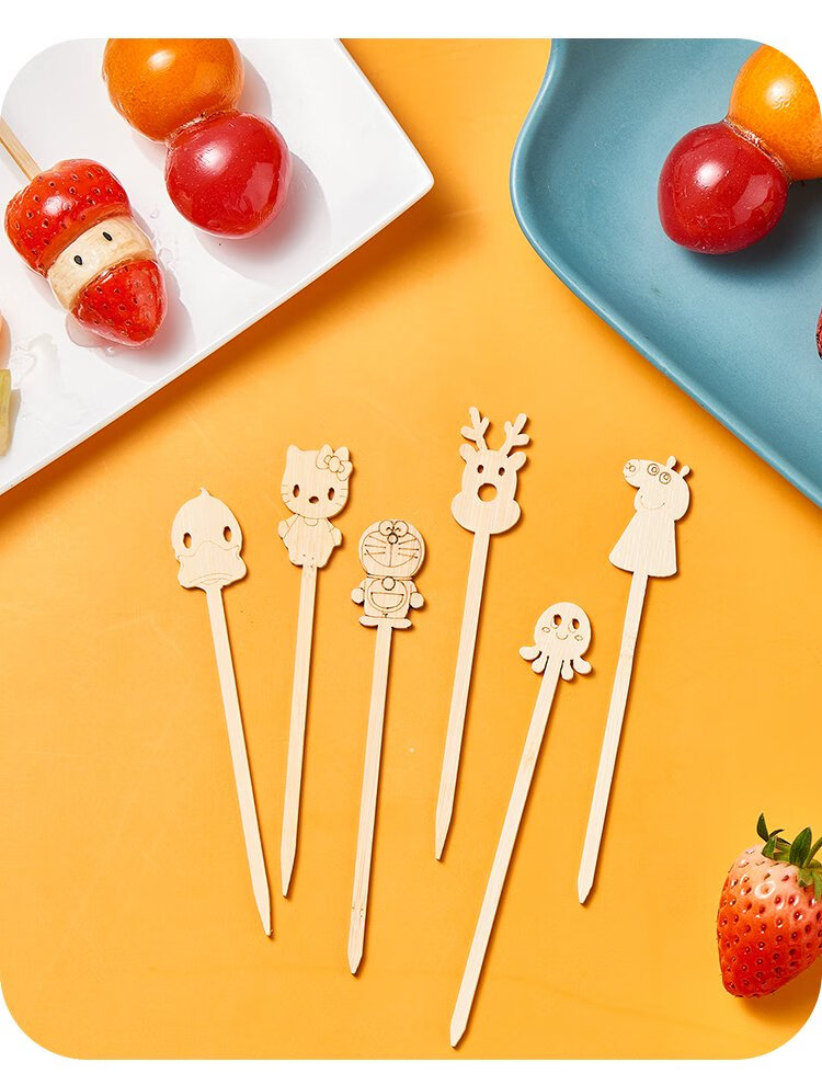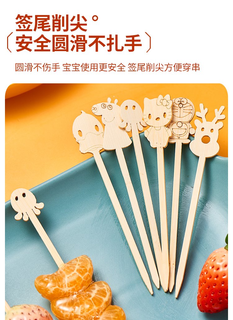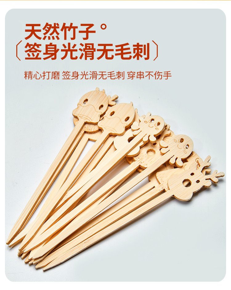 Suncojia candied haws skewers, bamboo skewers, fruit dessert skewers, Oden cooking skewers, barbecue skewers, children's cute cartoon bamboo skewers, 50 pieces