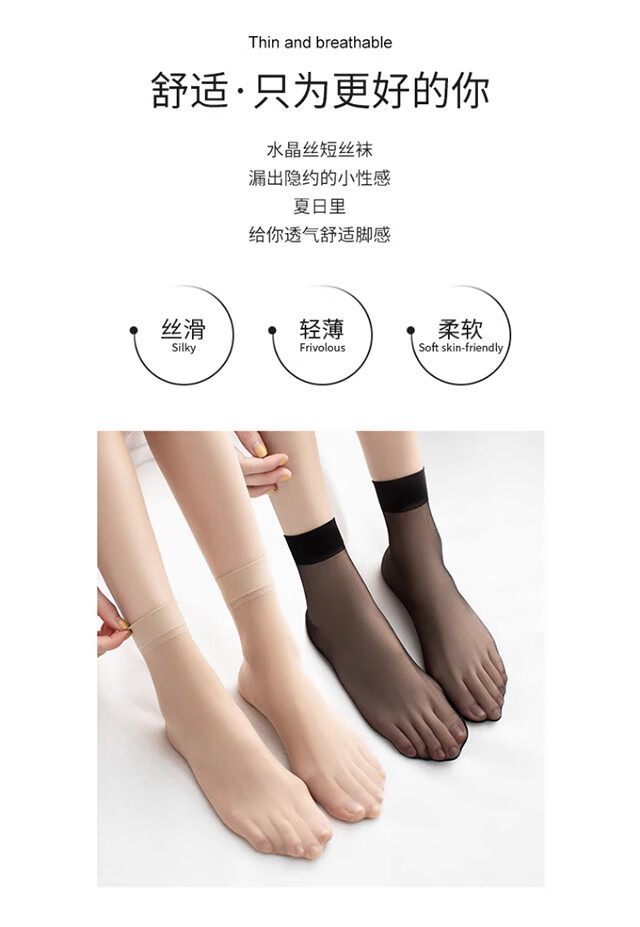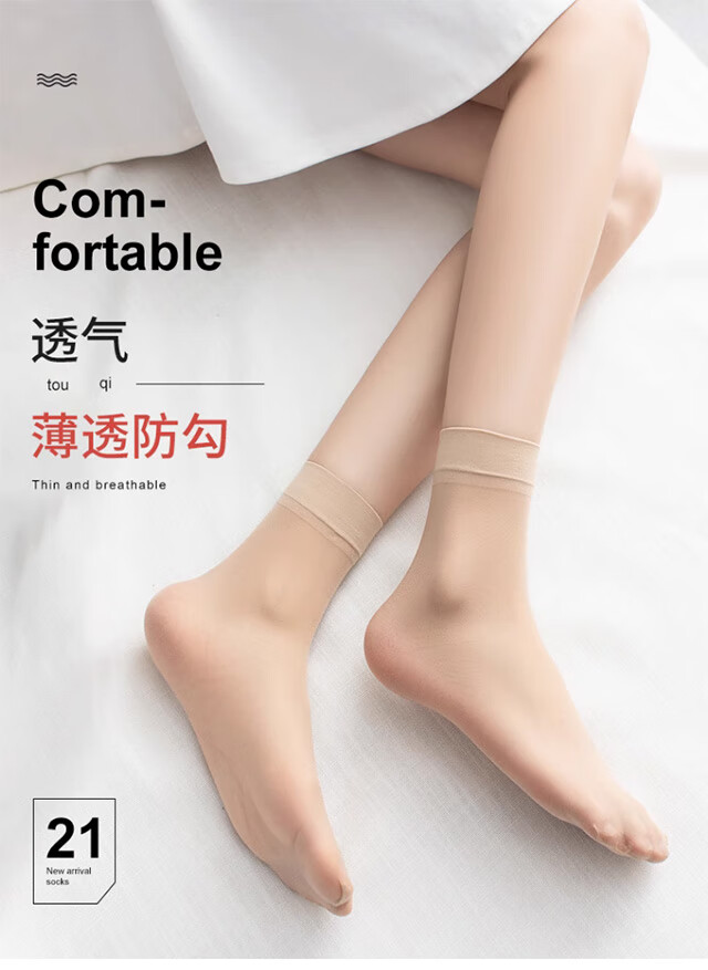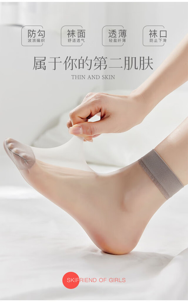 Langsha stockings women's socks crystal silk summer ultra-thin transparent wear-resistant mid-calf socks for women skin color 20 pairs