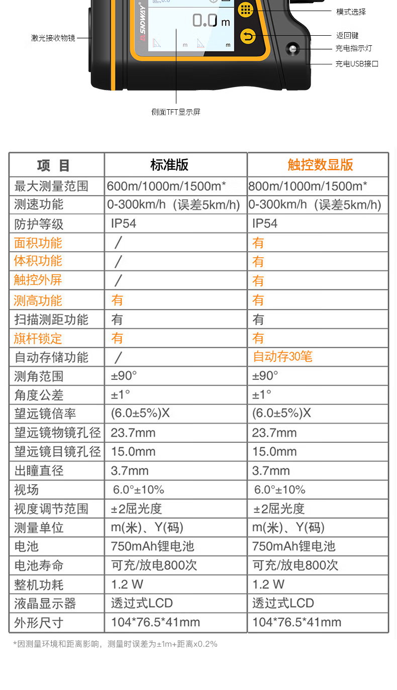 深达威望远镜激光测距仪户外高精度电子尺红外线高尔夫距离测量SW-1000B