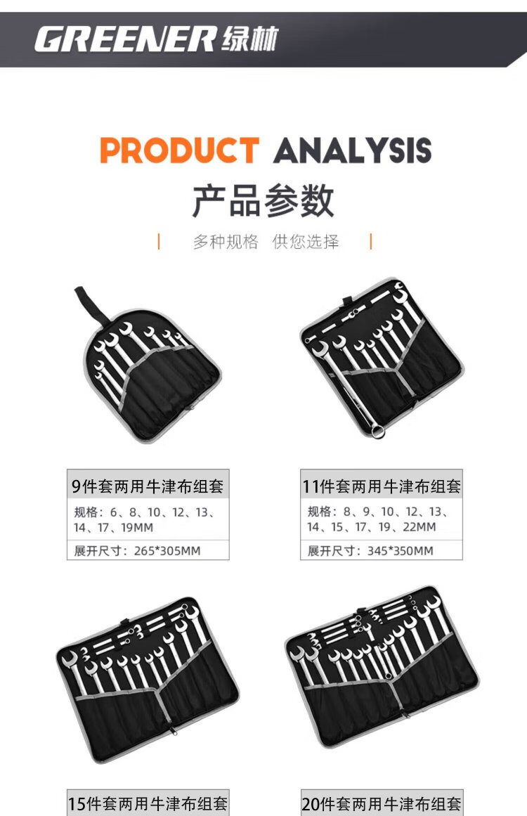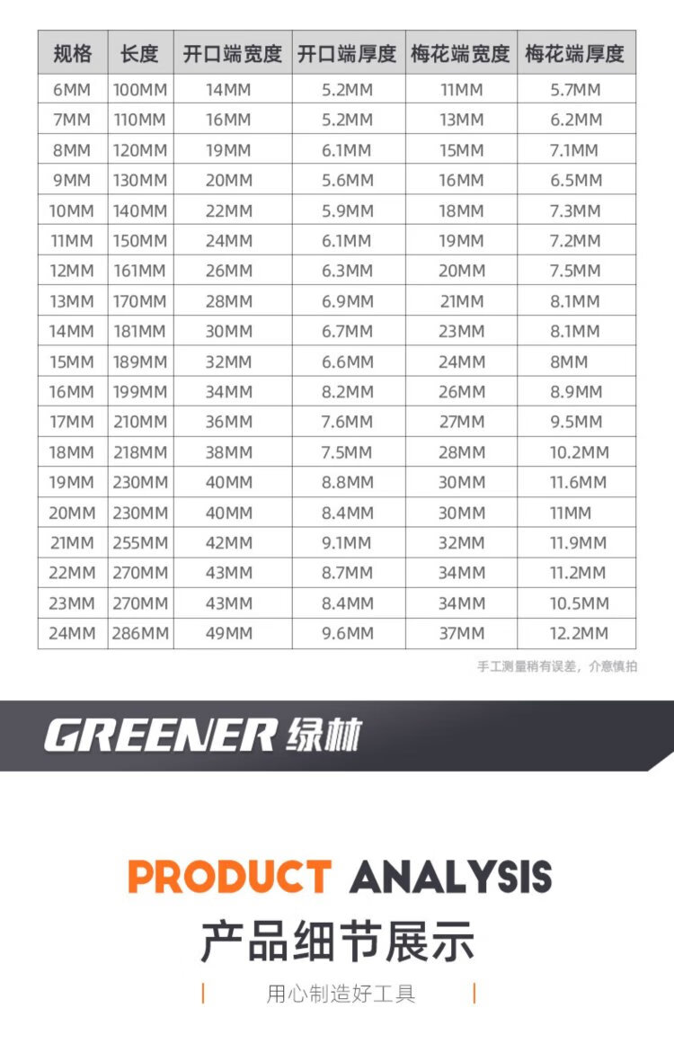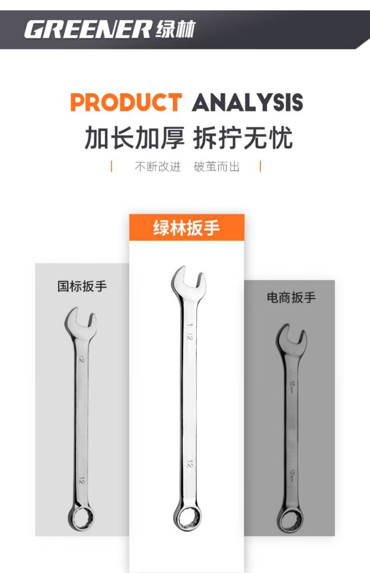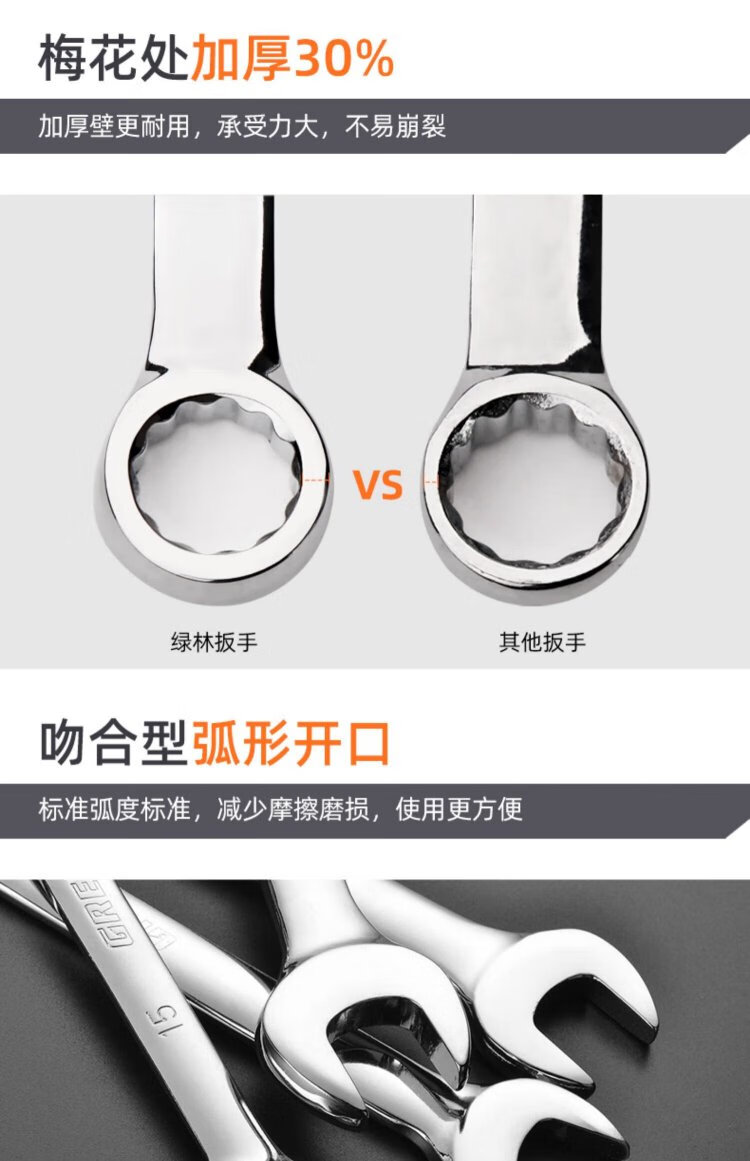 GREENER wrench set tool open plum blossom dual-use household 9-piece set 6mm-19mm fixed dead wrench car repair