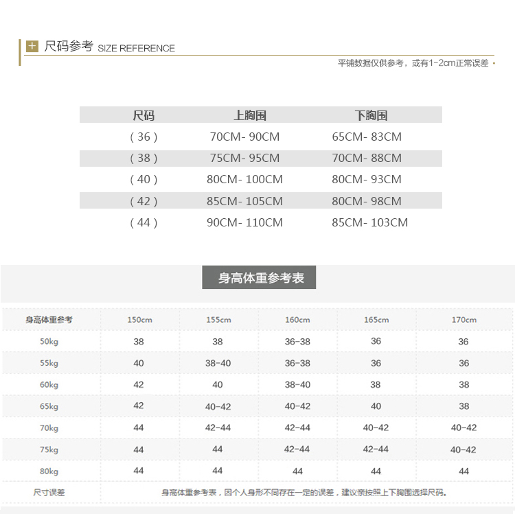 China (cm) 160-165/84-86 165-170 / 88-90 167-172 / 92-96 168-173 / 98-102 170-176 / 106-110