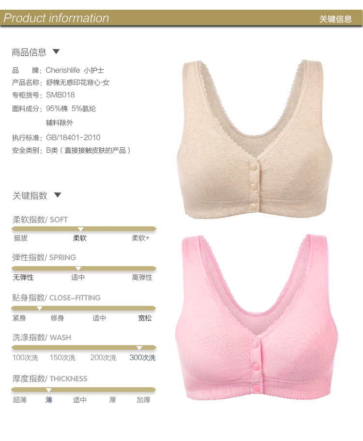 Bügelloser BH für kleine Krankenschwestern, Baumwoll-BH für mittlere und ältere Menschen, großer BH mit Knopfleiste vorne für Mütter