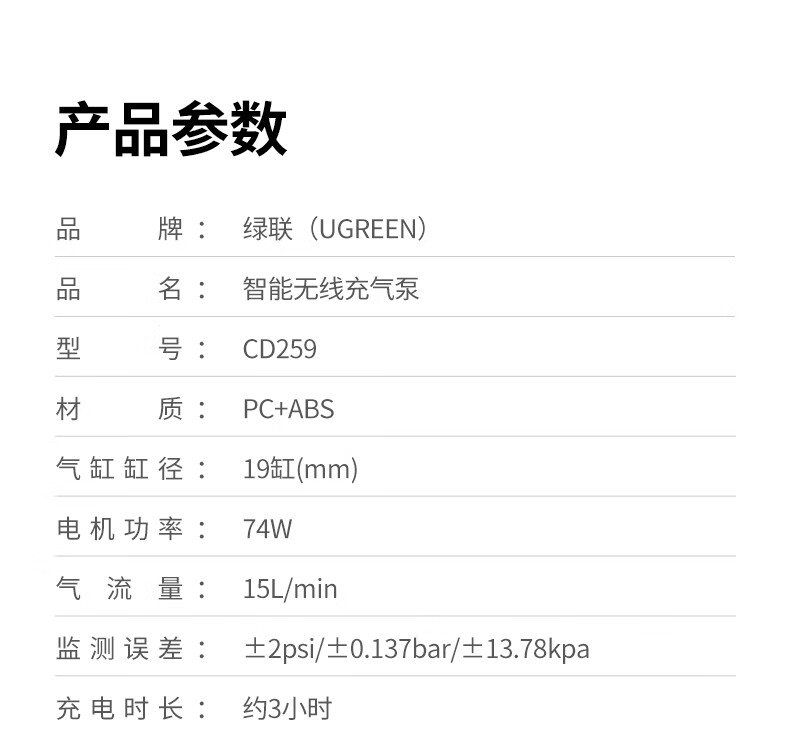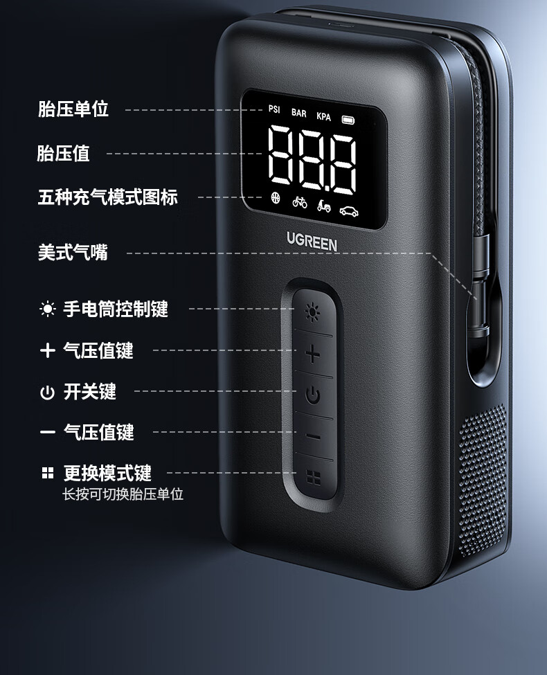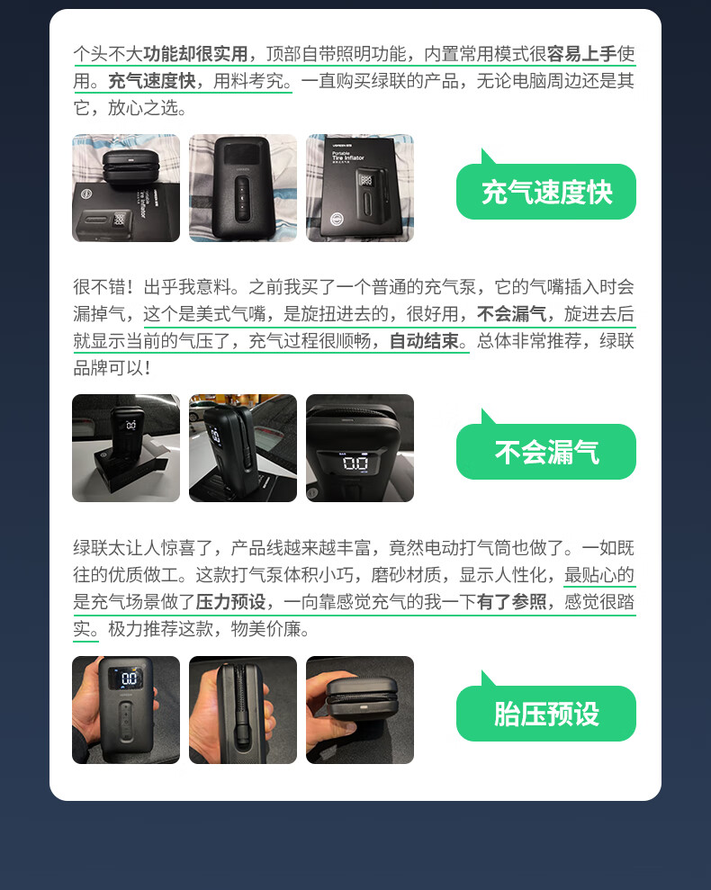 Green Link Wireless Car Air Pump Inflator Electric Inflatable Cycling Pump Suitable for Tesla Xiaomi BYD Cars