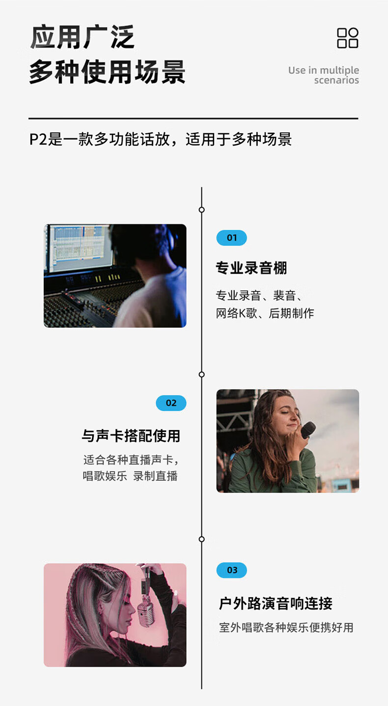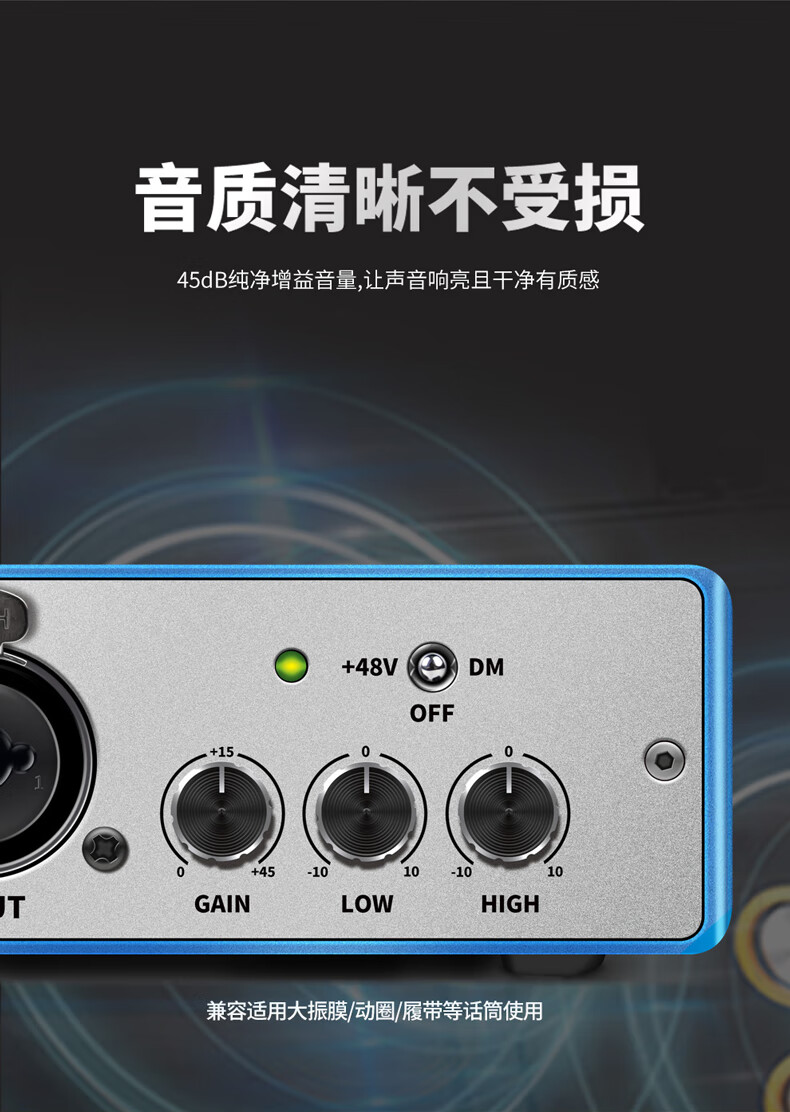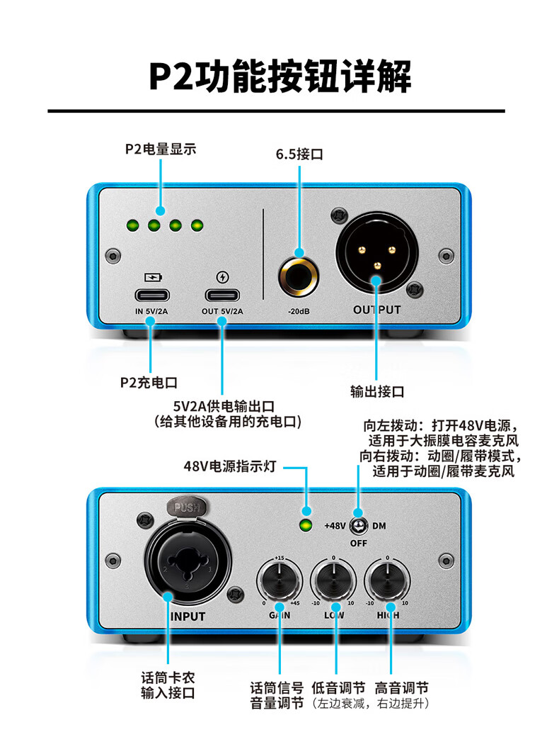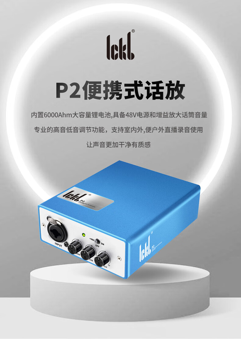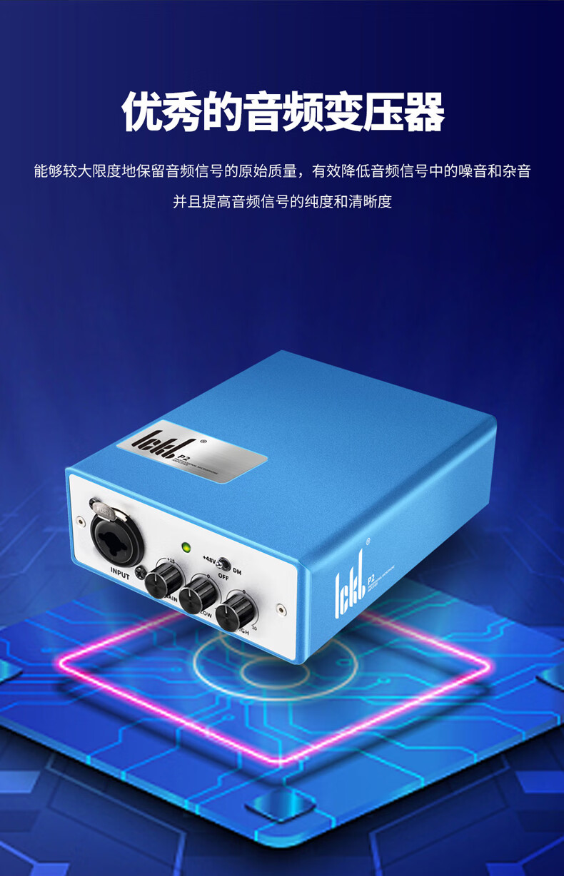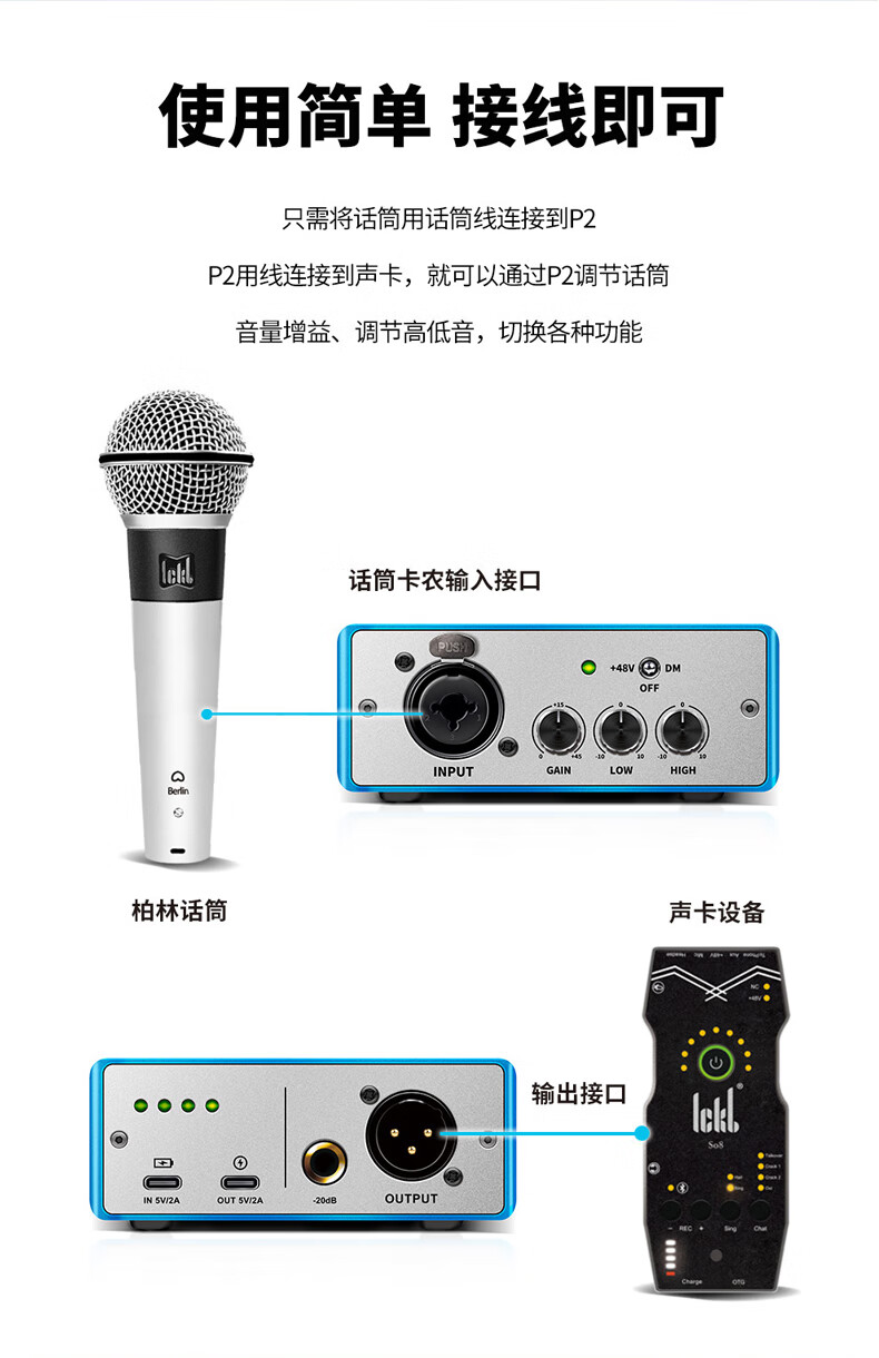Ickb P2 microphone preamp outdoor live broadcast 48v large diaphragm condenser microphone dynamic microphone signal amplifier mobile phone computer sound card portable mobile device equalization adjustment gain
