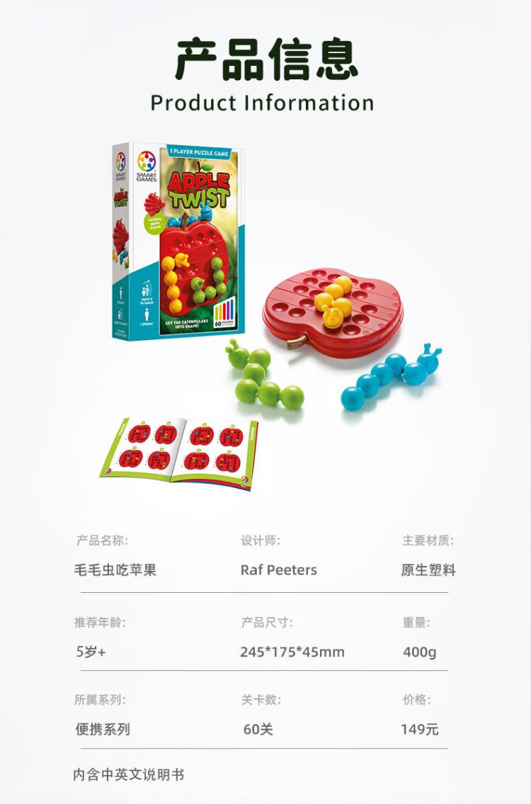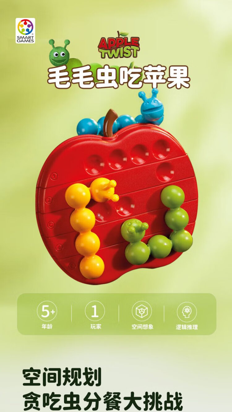 Smart Games Caterpillar Eats an Apple Children's Educational Board Game Creative Variety of Educational Puzzles Birthday Gift 5 Years Old+