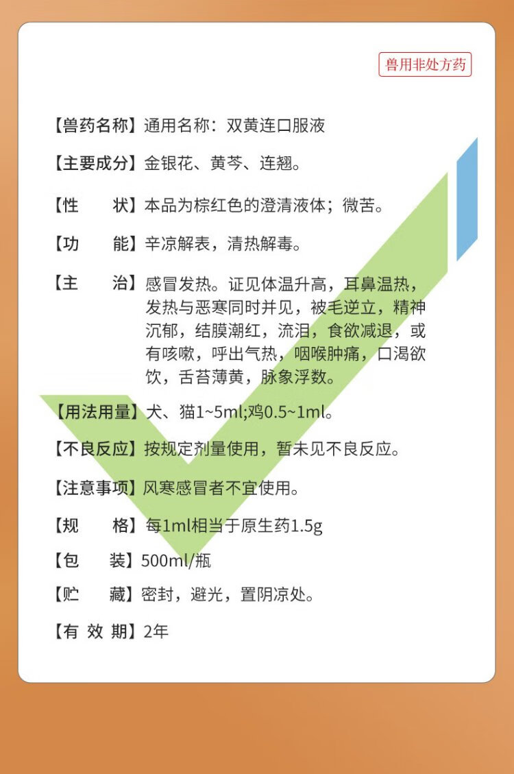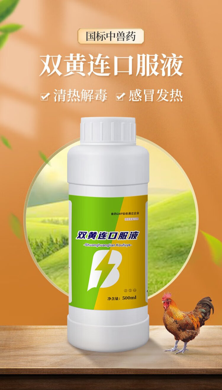 Huazhu Veterinary Medicine Shuanghuanglian Oral Liquid Veterinary Shuanghuanglian Chicken, Duck, Goose, Pig, Cattle and Sheep Cold Respiratory Antiviral 1 Bottle