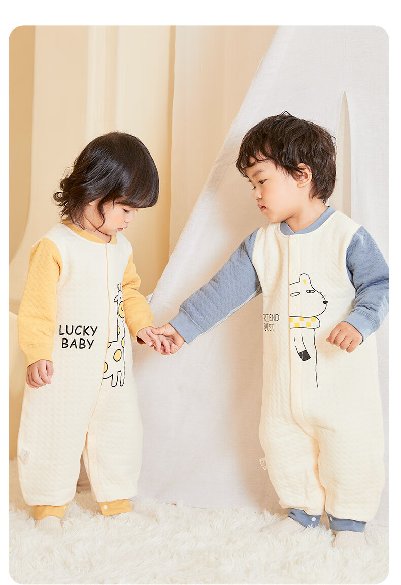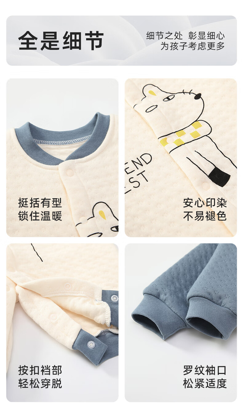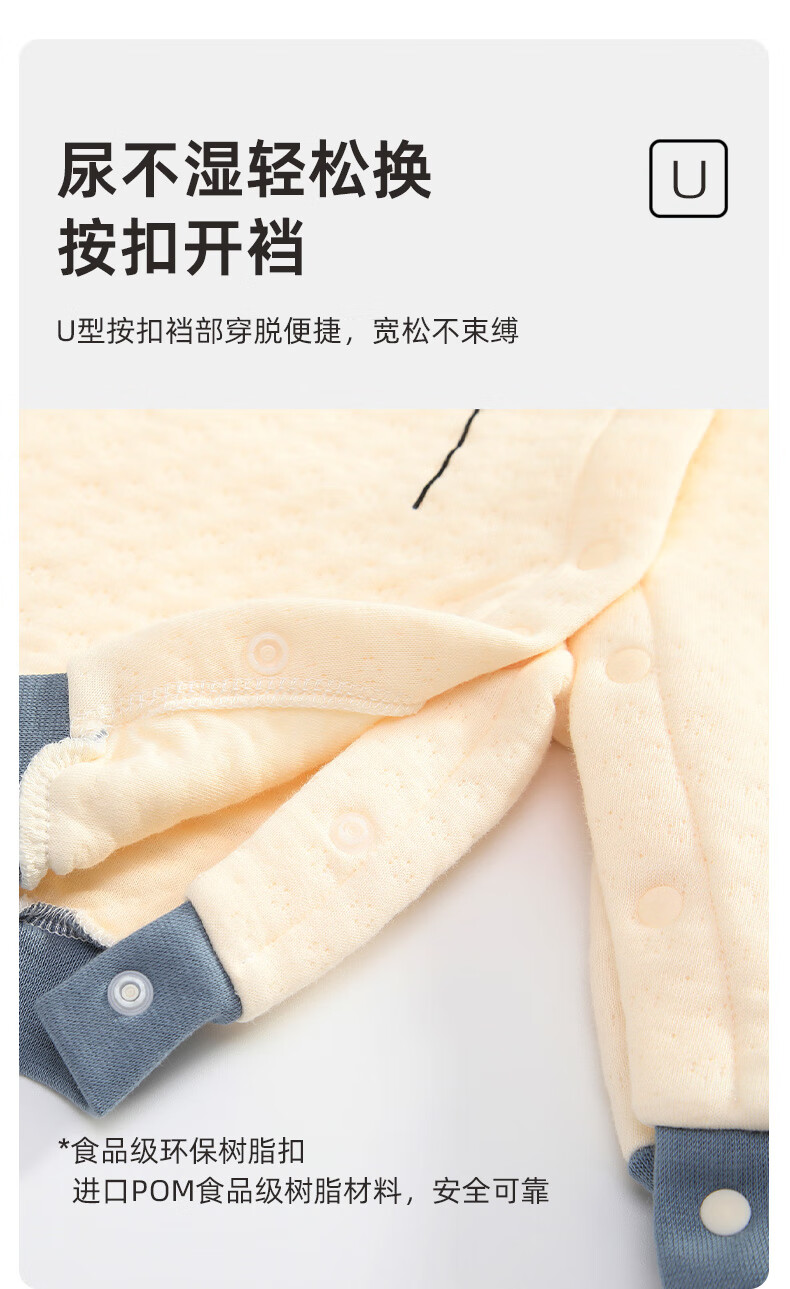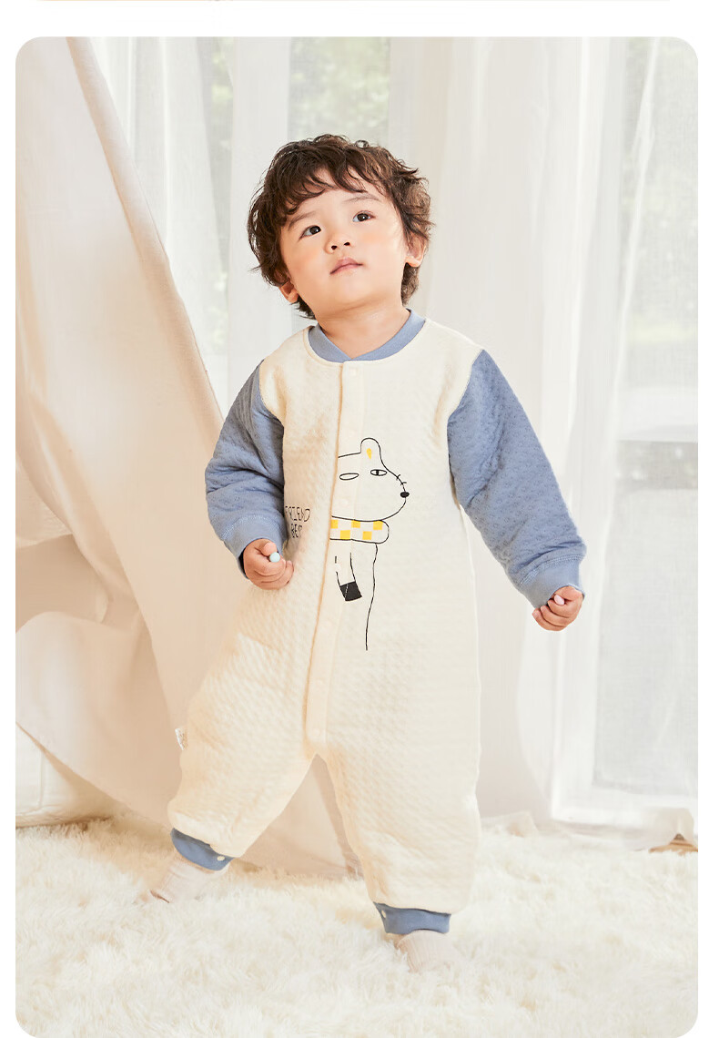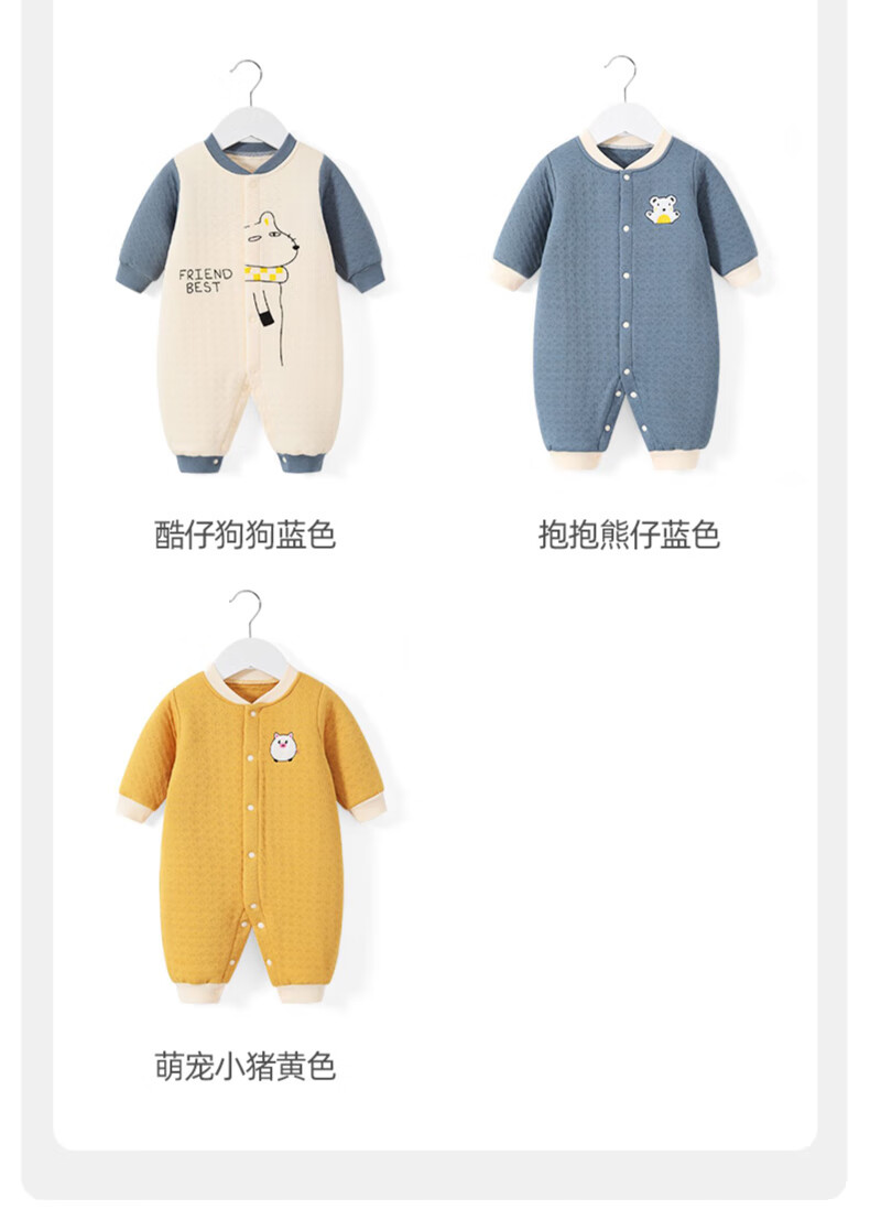 Shubei Yi baby clothes newborn jumpsuit pure cotton one-year-old baby crawling clothes autumn and winter full moon warm harem blue 73