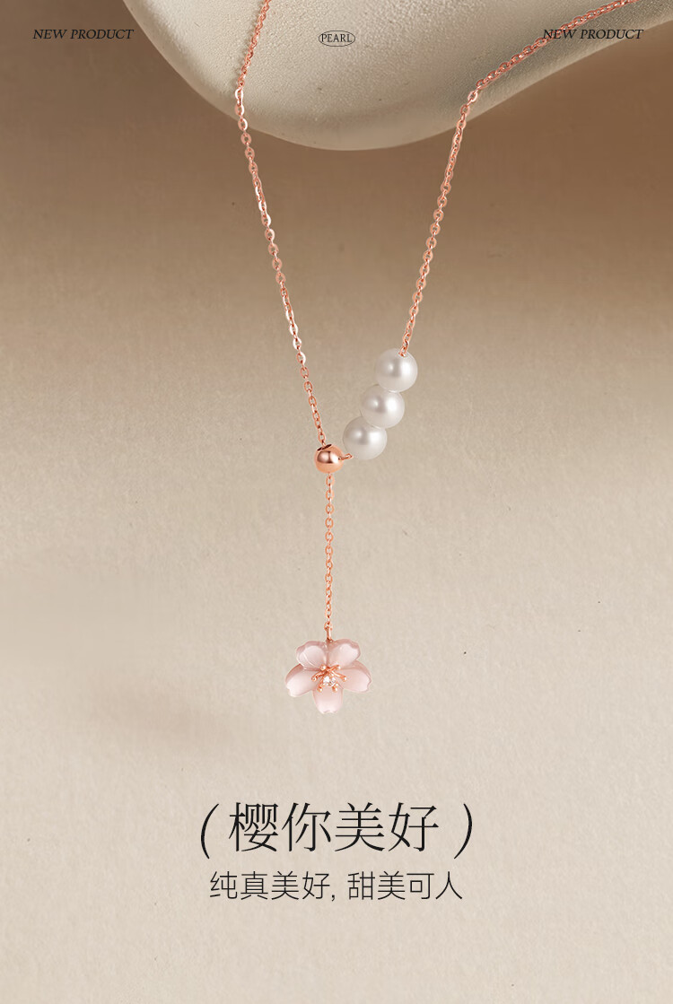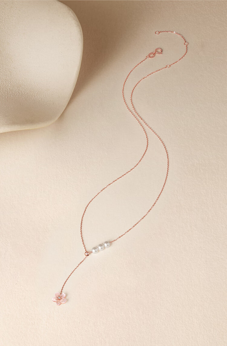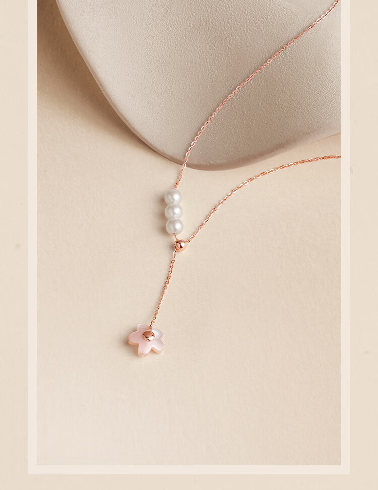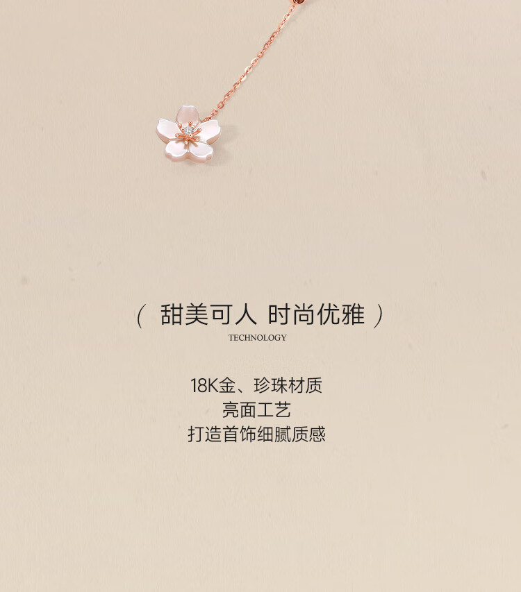 Saturday blessing 18K gold pearl necklace female cherry blossom mother-of-pearl gold necklace birthday gift X067962 about 40+5cm