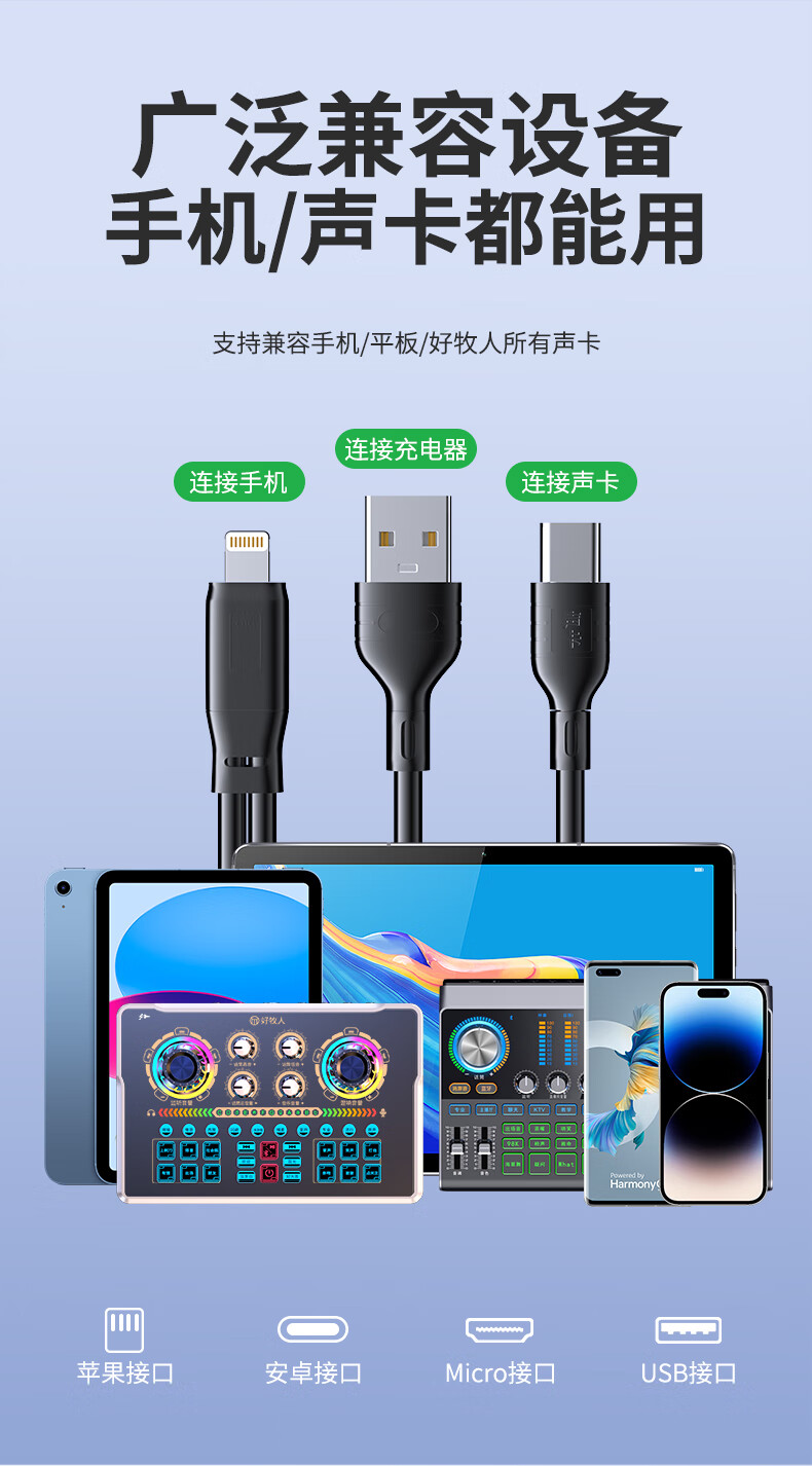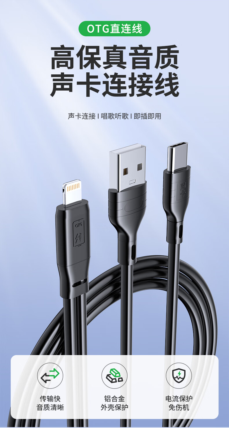 Good Shepherd Live Sound Card OTG Adapter iPhone Android OTG Data Cable Cable Conversion Mobile Phone Can Live Broadcast While Charging Type-c Special Microphone Apple Version