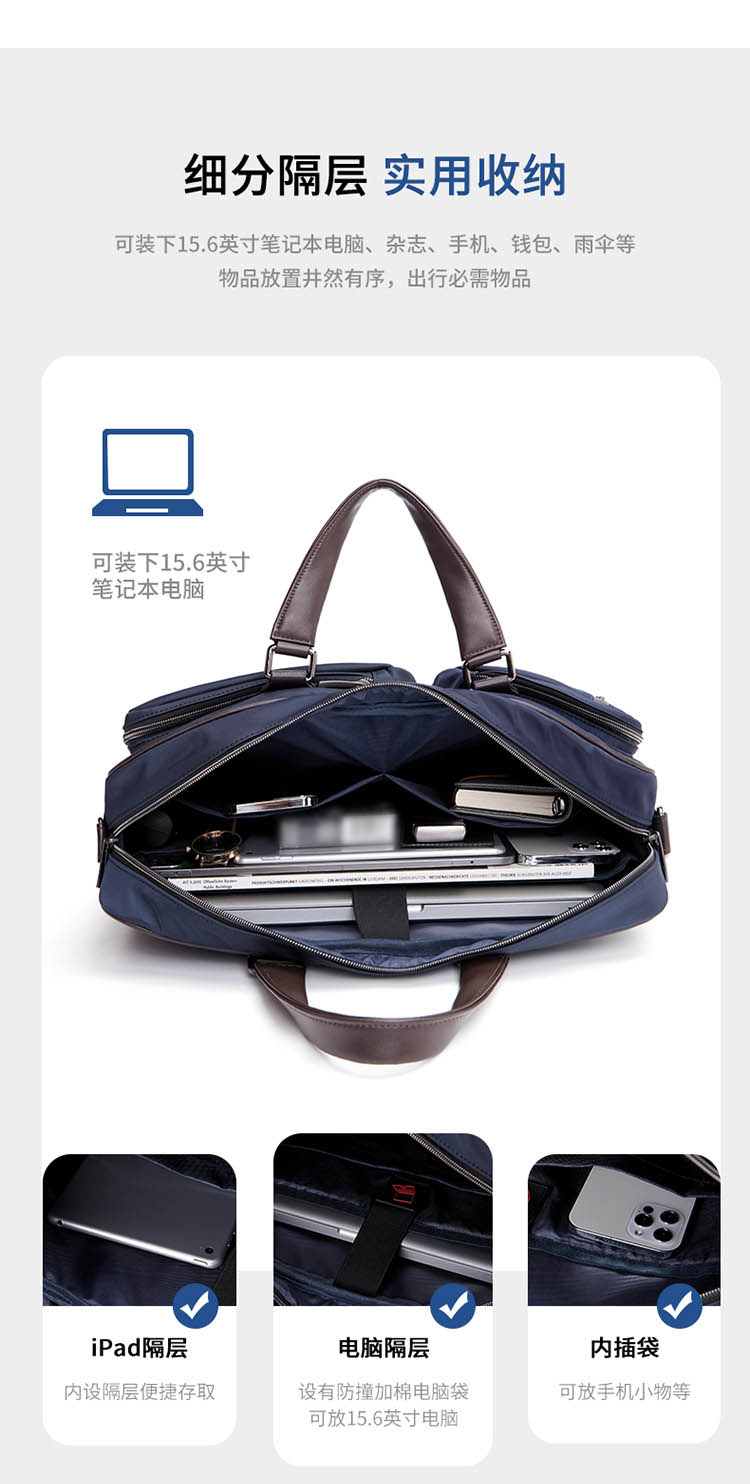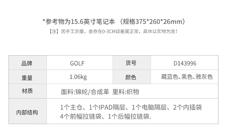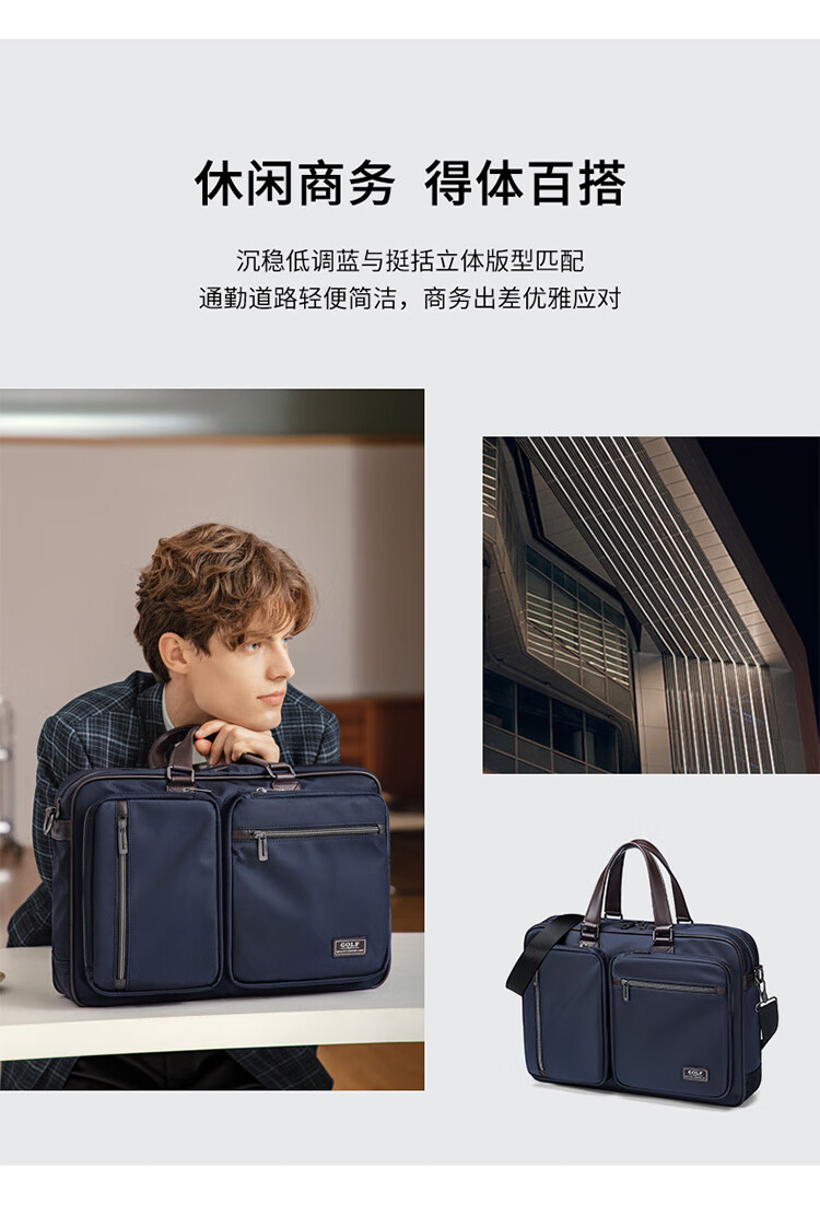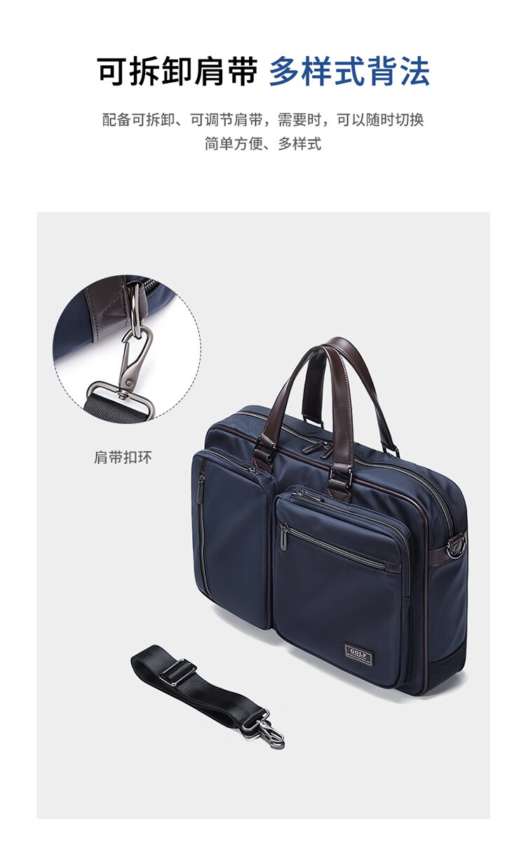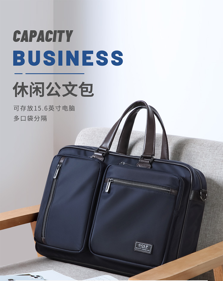 Golf GOLF business briefcase men's large-capacity handbag men's 15.6-inch computer bag multi-compartment water-repellent casual shoulder crossbody bag 5I698441J black