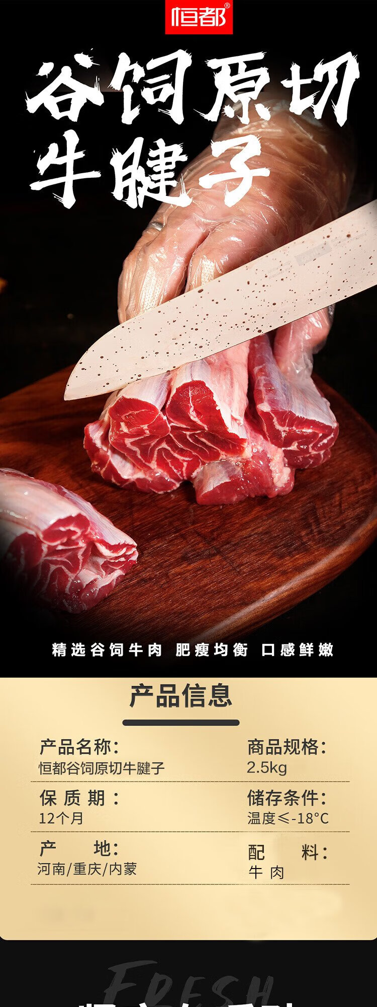 Hengdu Domestic Grain-fed Raw Cut Beef Tendon 5Jin Jin is equal to 0.5kg, does not contain tendon core, fresh beef, straight from the source