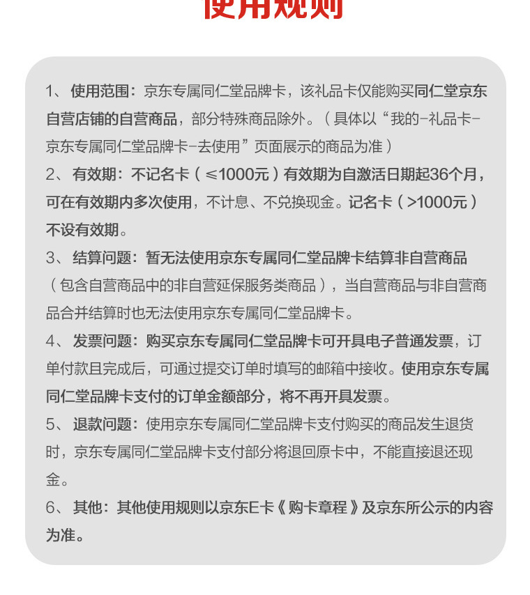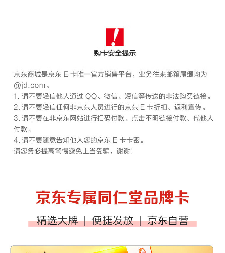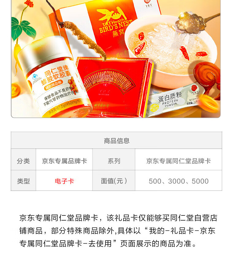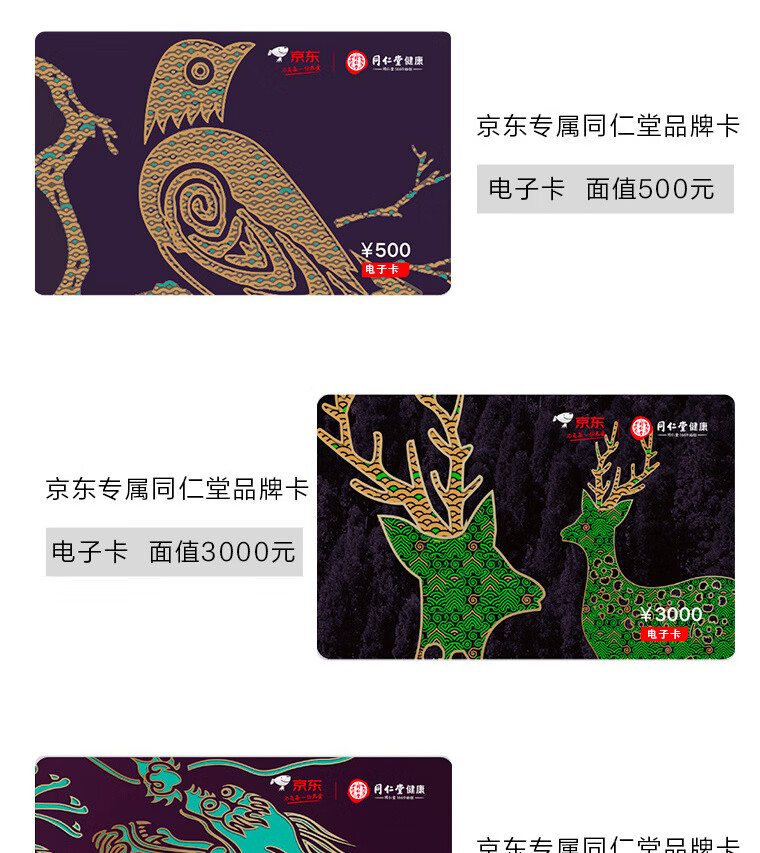 JD.com’s exclusive Tongrentang brand card with a face value of 5,000 (electronic gift card) can only purchase self-operated products at JD.com’s Tongrentang self-operated flagship store, excluding some special products.