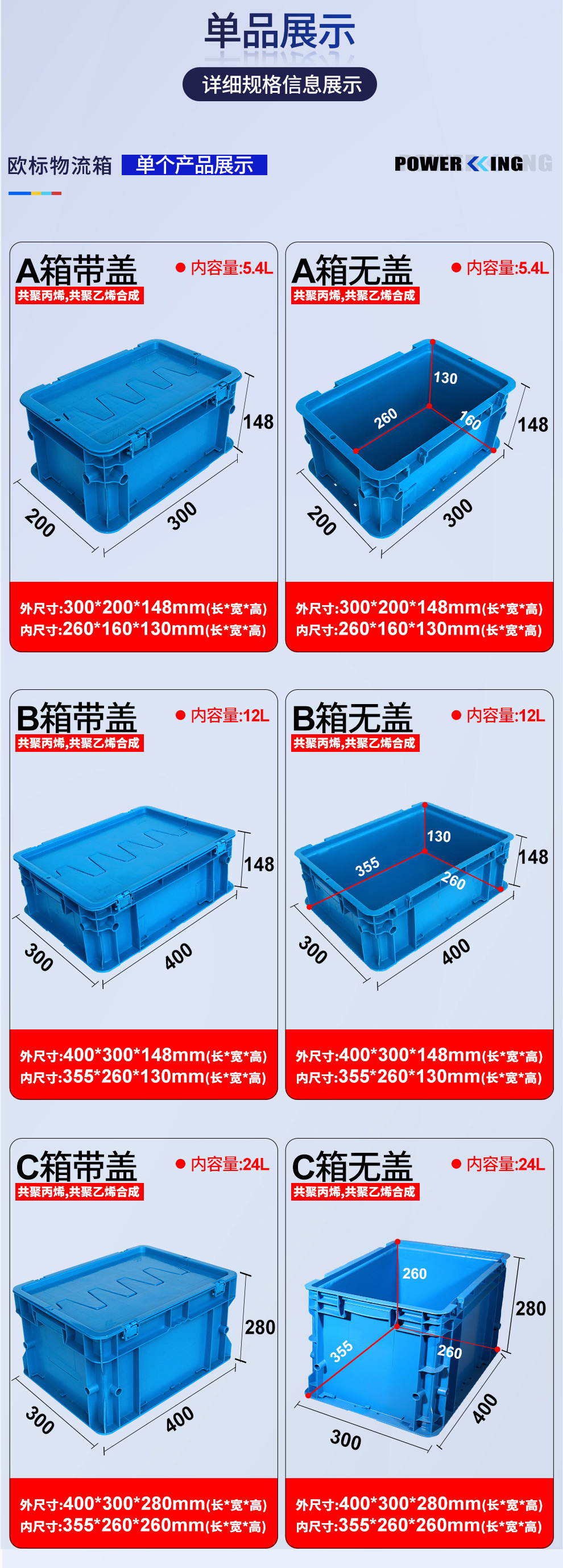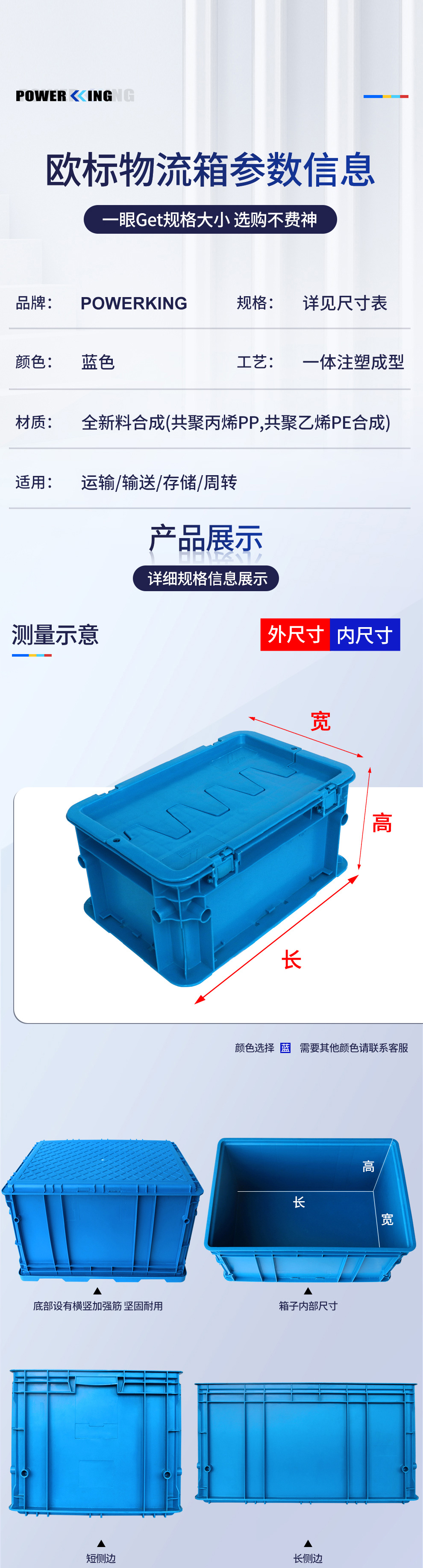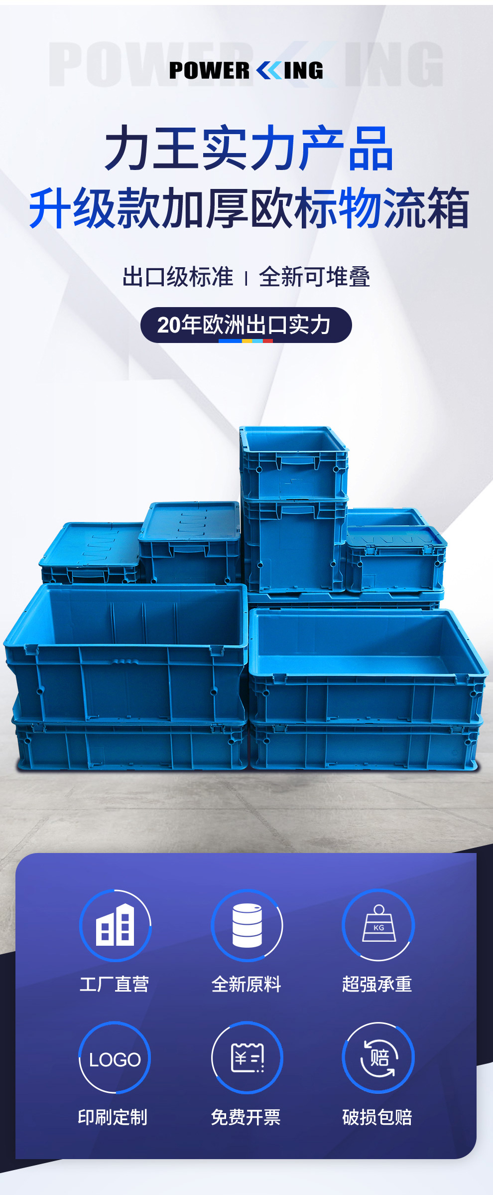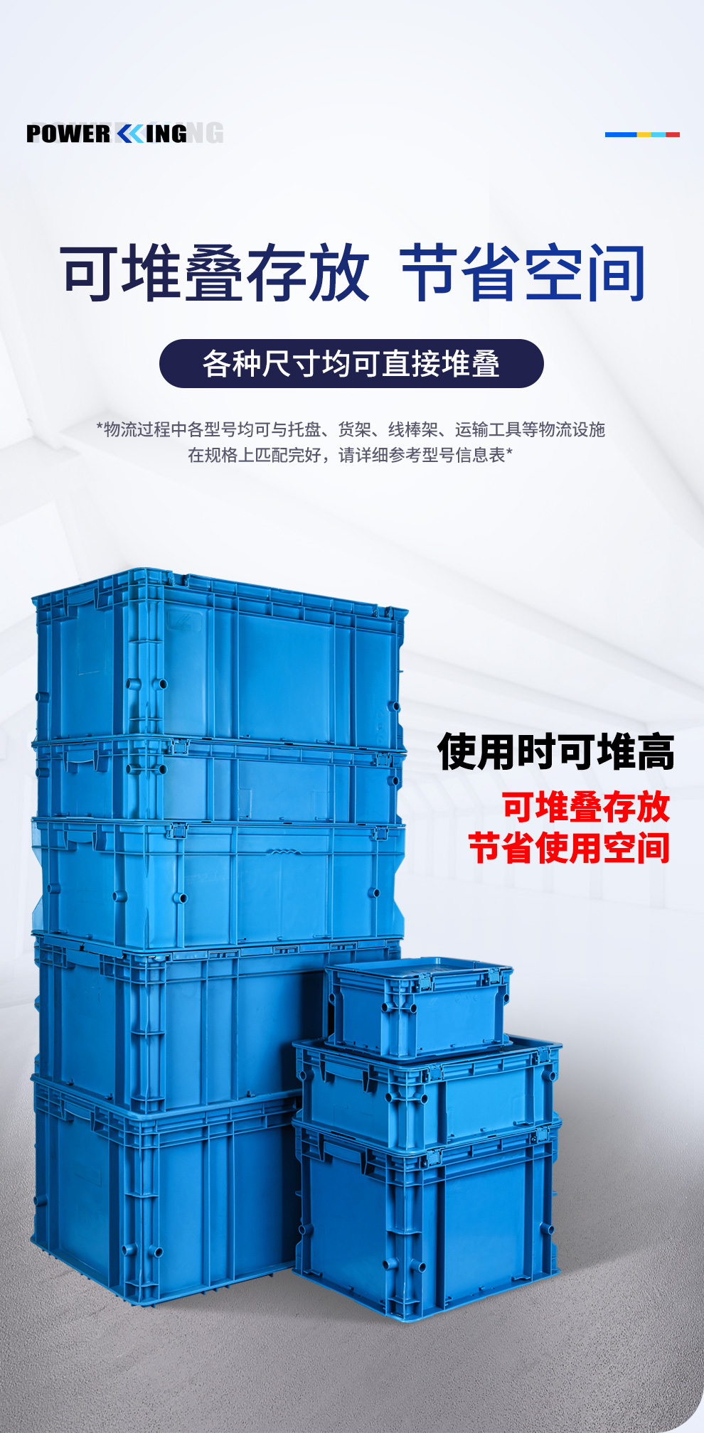 POWERKING stackable boxes, insertable boxes, thickened and fall-resistant plastic boxes, sorting and storage boxes, industrial auto parts transport boxes, turnover logistics boxes with lids 600*400*280 gray