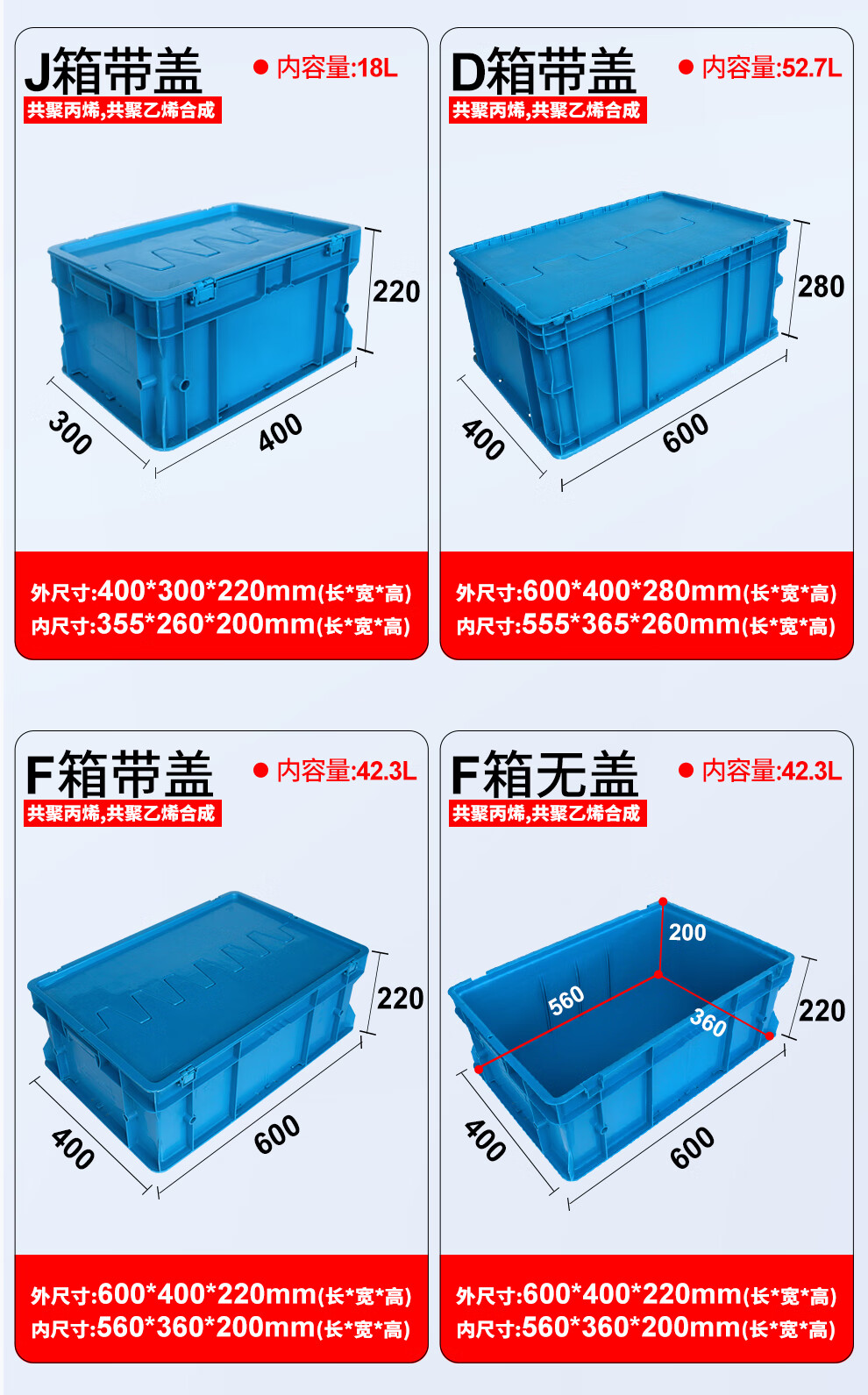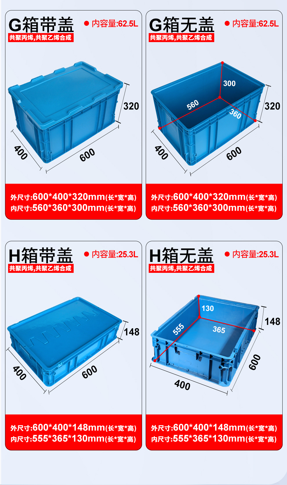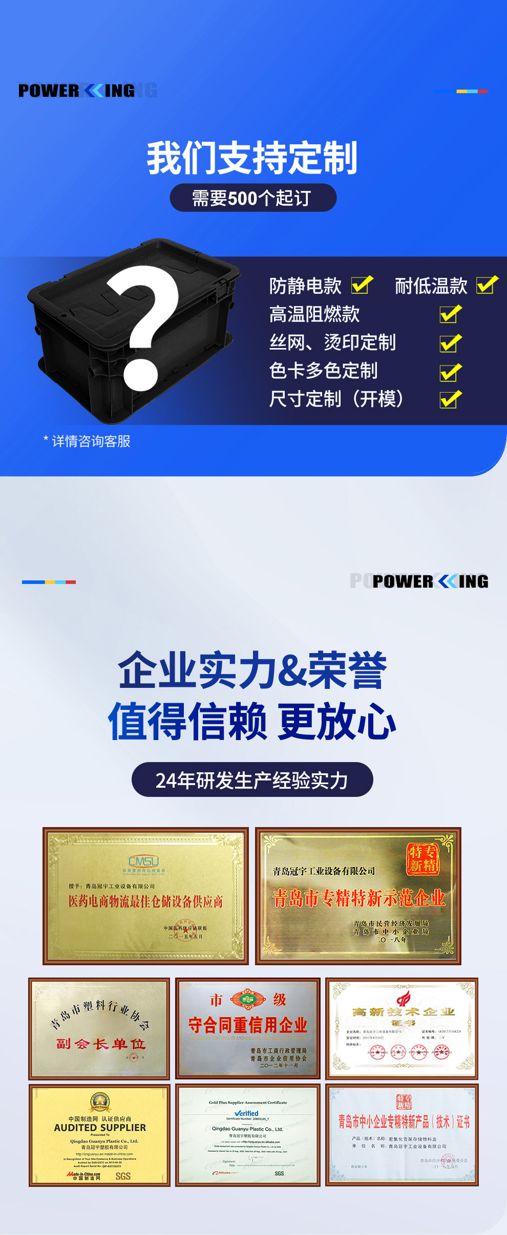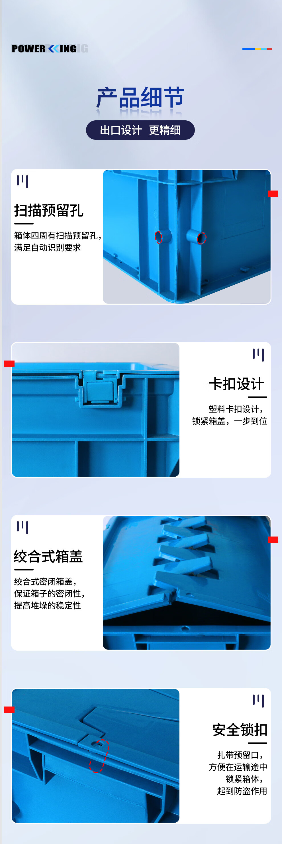 POWERKING stackable boxes, insertable boxes, thickened and fall-resistant plastic boxes, sorting and storage boxes, industrial auto parts transport boxes, turnover logistics boxes with lids 600*400*280 gray