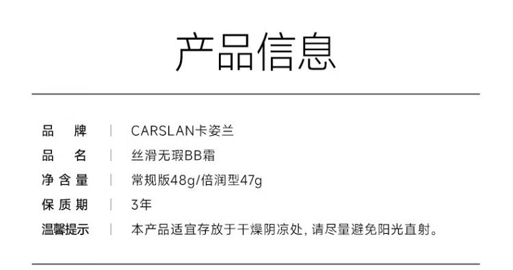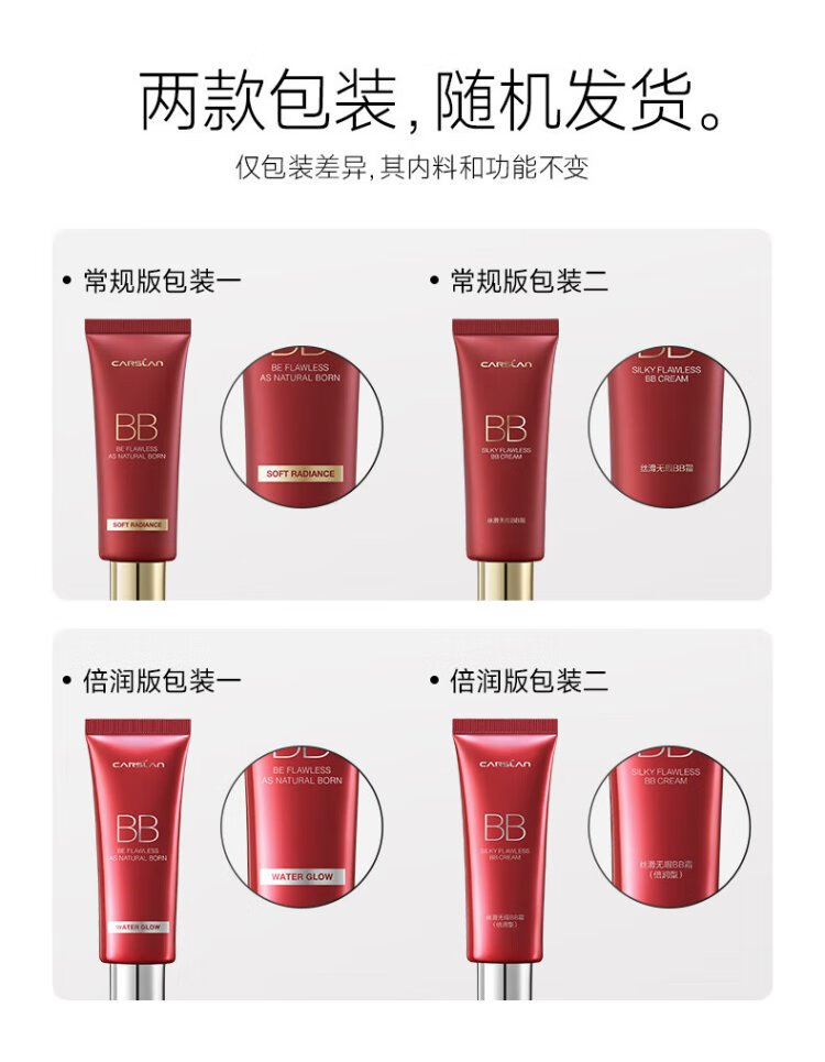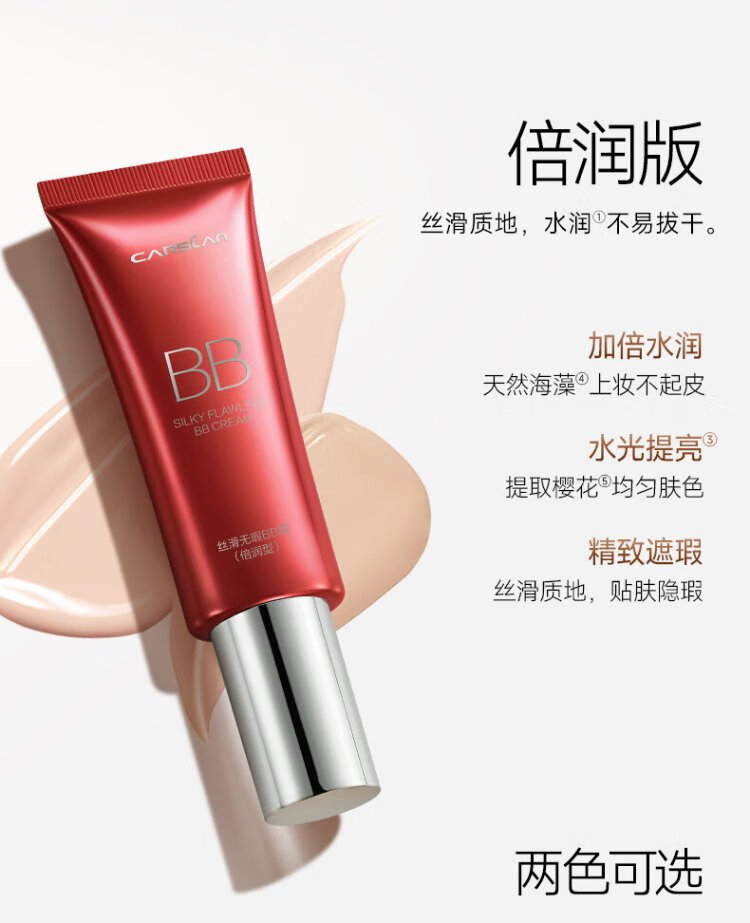 Carslan silky flawless BB cream double moisturizing version isolation oil control concealer moisturizing long-lasting 02 tender complexion 47g birthday gift for women