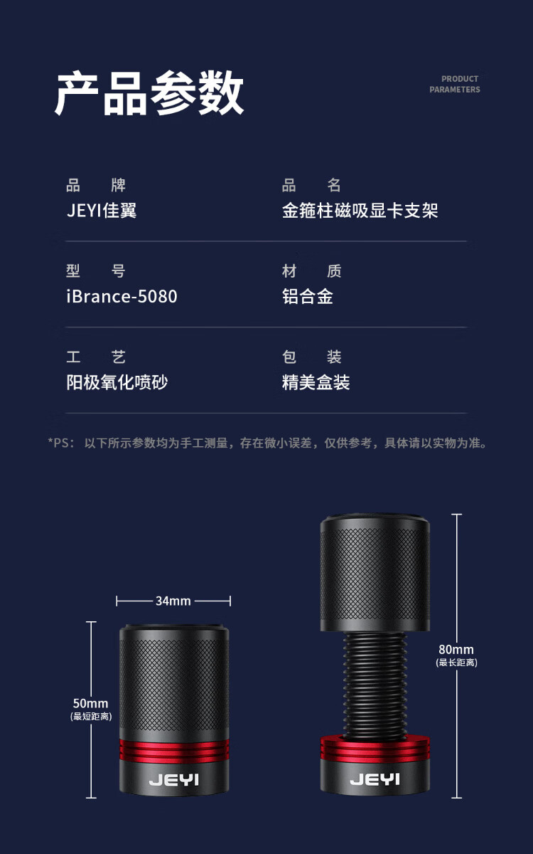 JEYI graphics card bracket 40/50 series graphics card bracket fan support bracket sea view room desktop computer case cylindrical bottom magnetic height adjustable aluminum alloy material