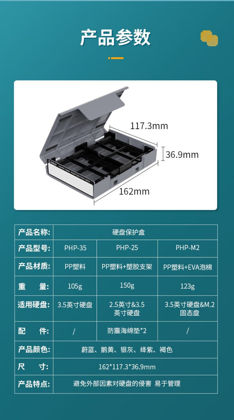 ORICO M.2 SSD Solid State Drive Storage and Protection Box Shockproof/Compression Resistant/Fall Resistant/Tagged/Stackable Protective Case Gray PHP-M2