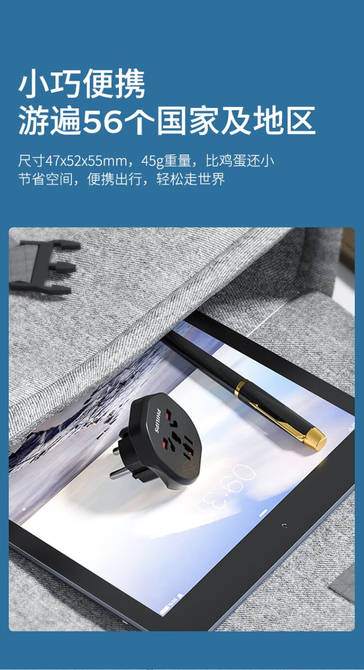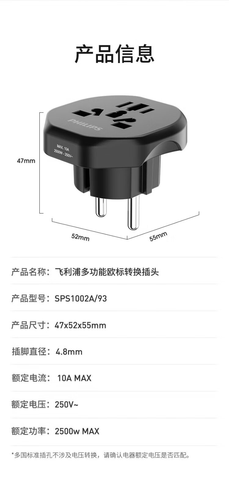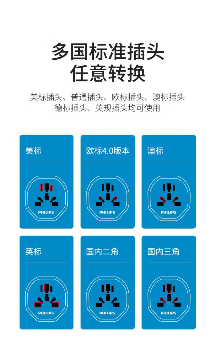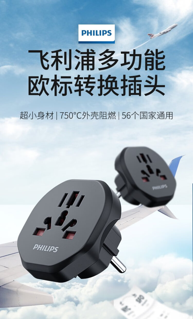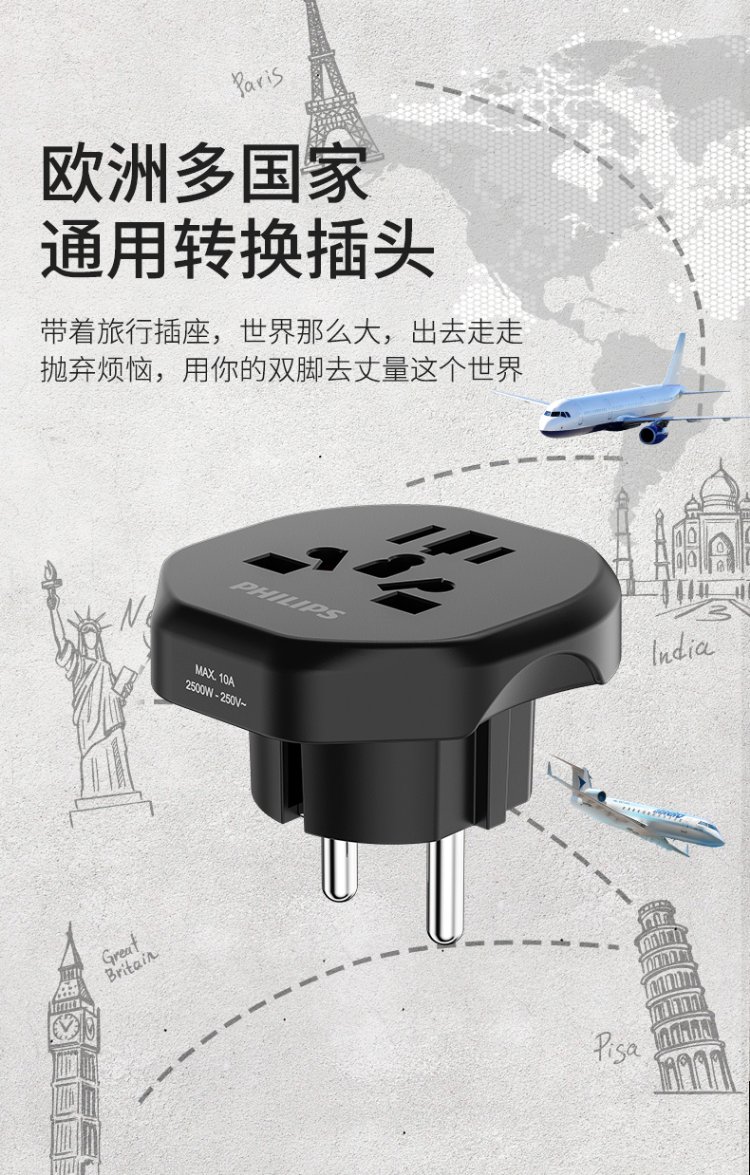 Philips (PHILIPS) multi-country travel socket/European standard conversion plug/socket converter/applicable to Germany, France, Spain, Portugal, Russia, Thailand, and Vietnam