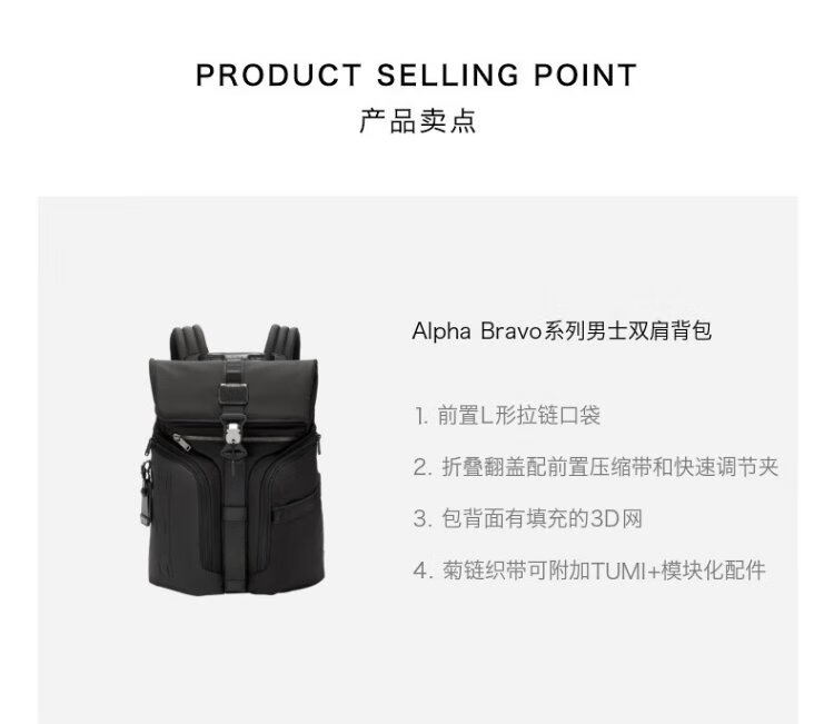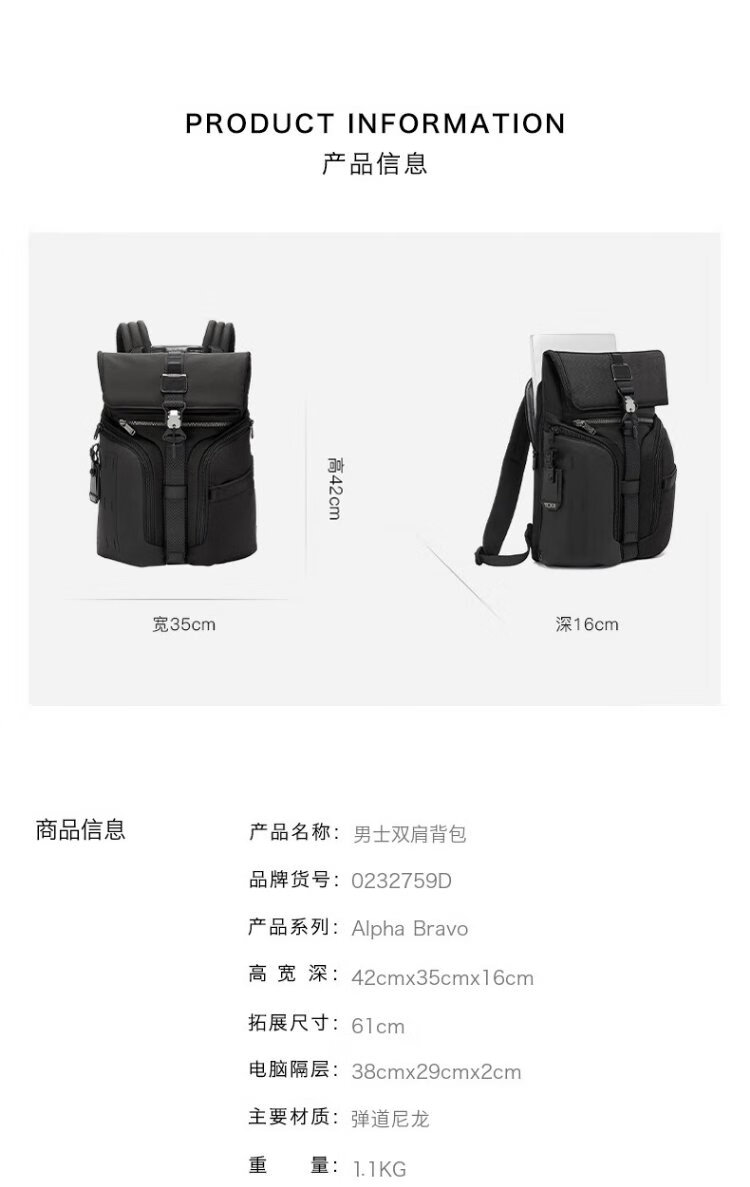 TUMI ALPHA BRAVO men's backpack daily commuting business travel high-end backpack black