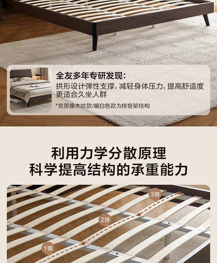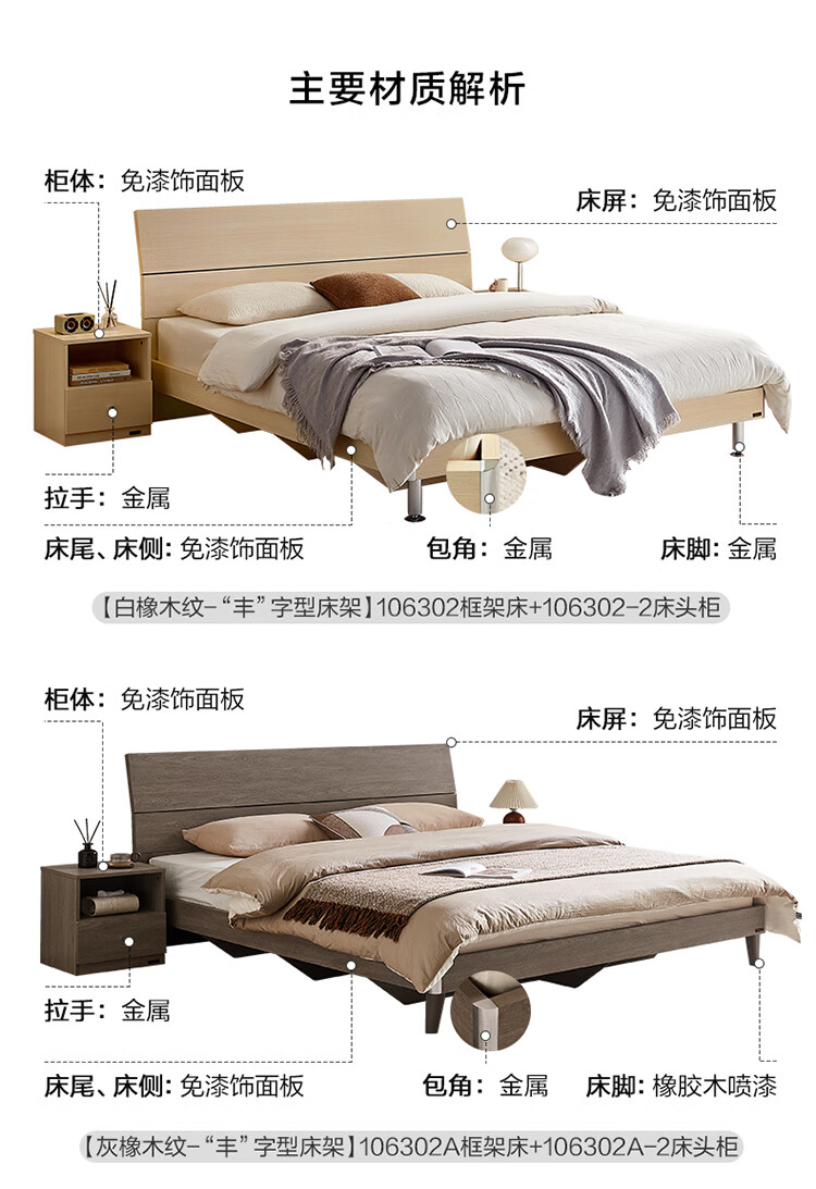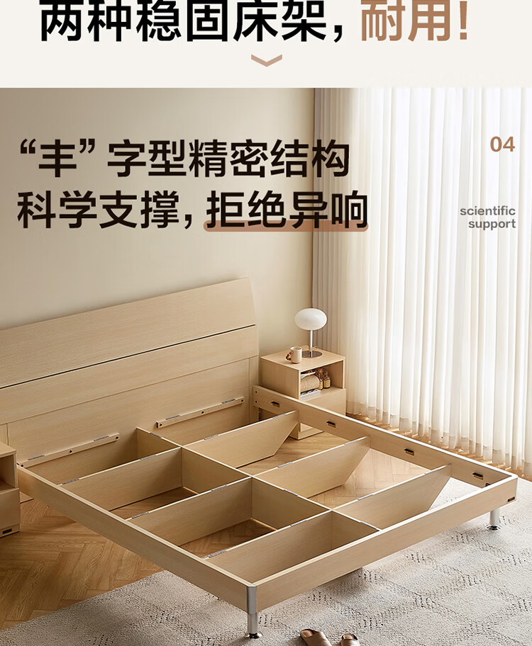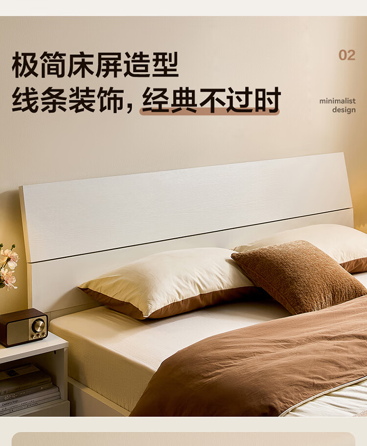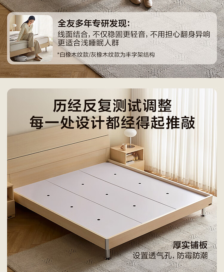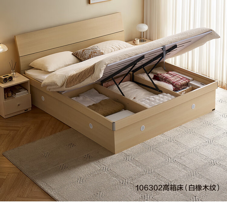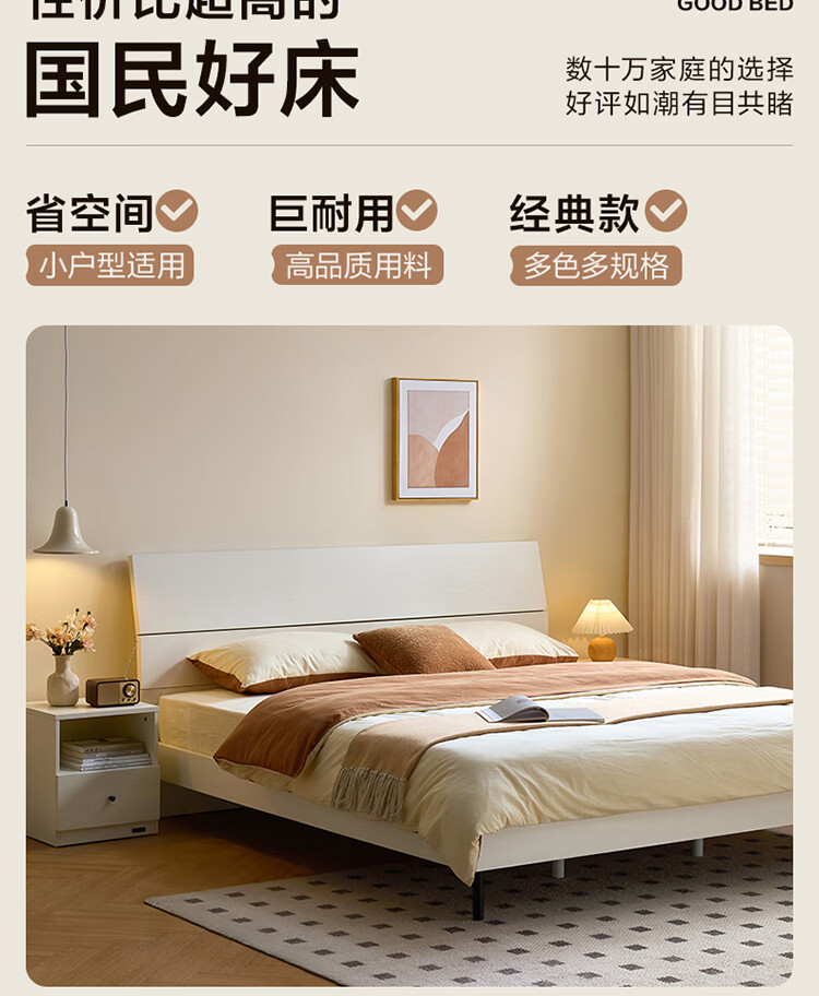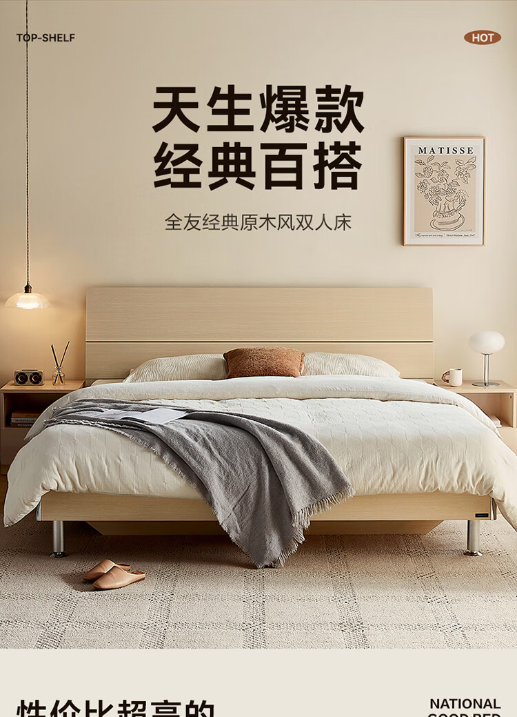 Quanyou Home Furnishing Bed Log Style 1.5 Meter Modern Simple Master Bedroom Double King Bed High Legbed Bed Minimalist Home