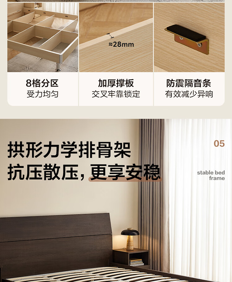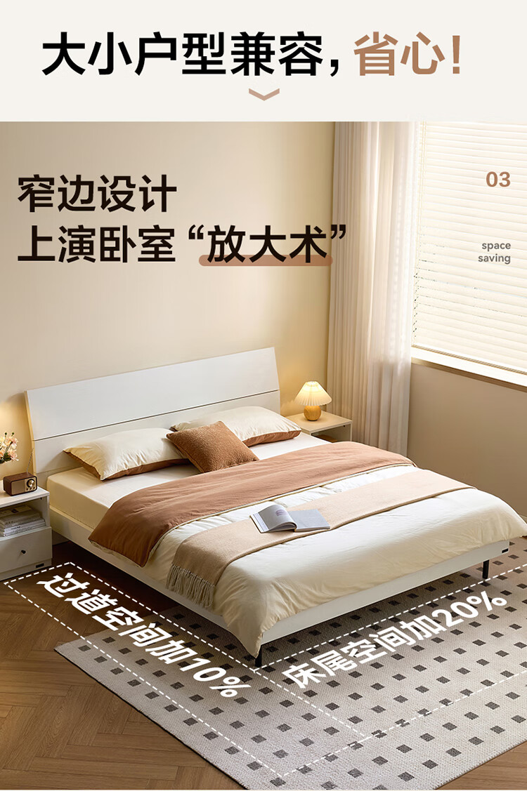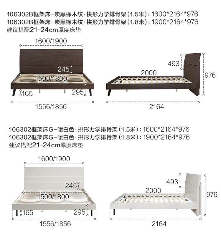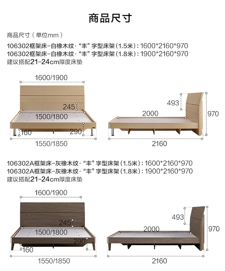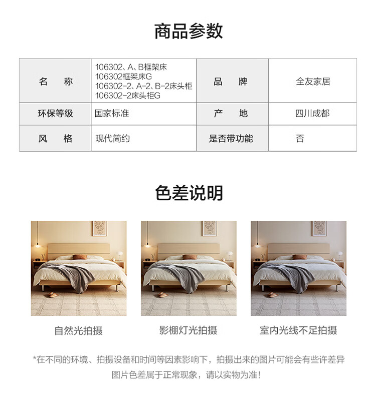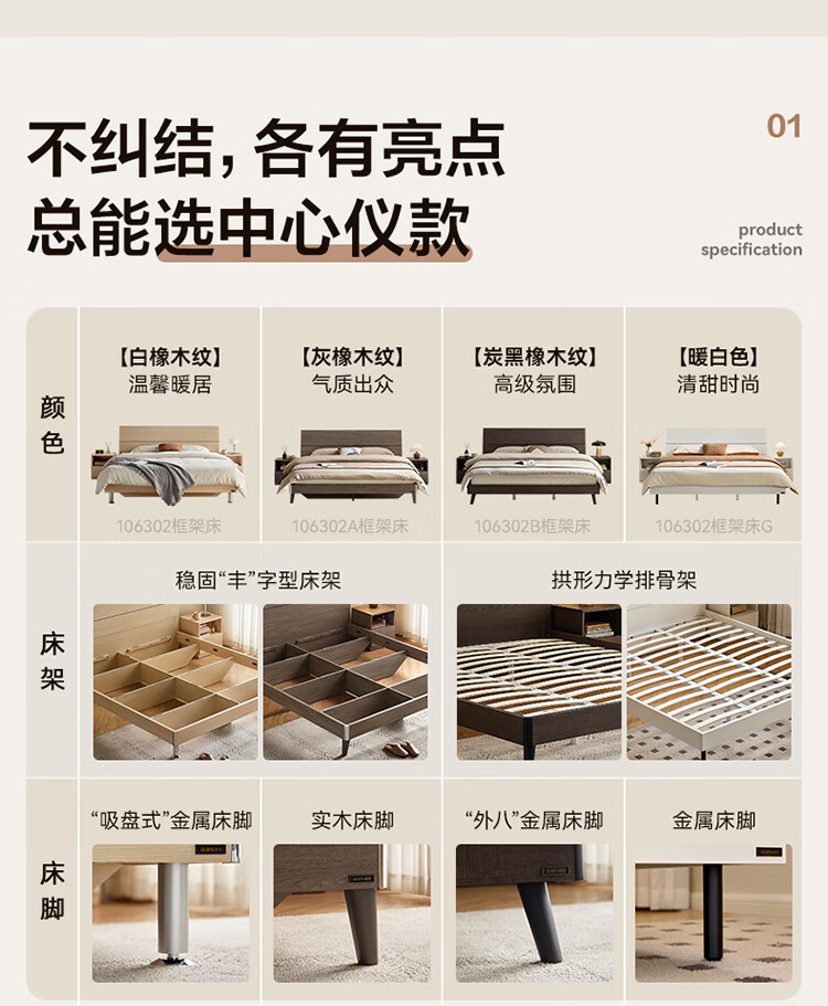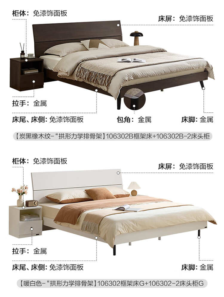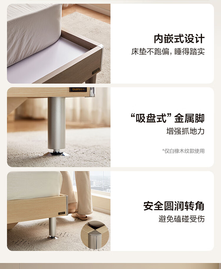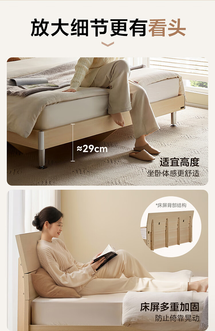 Quanyou Home Furnishing Bed Log Style 1.5 Meter Modern Simple Master Bedroom Double King Bed High Legbed Bed Minimalist Home