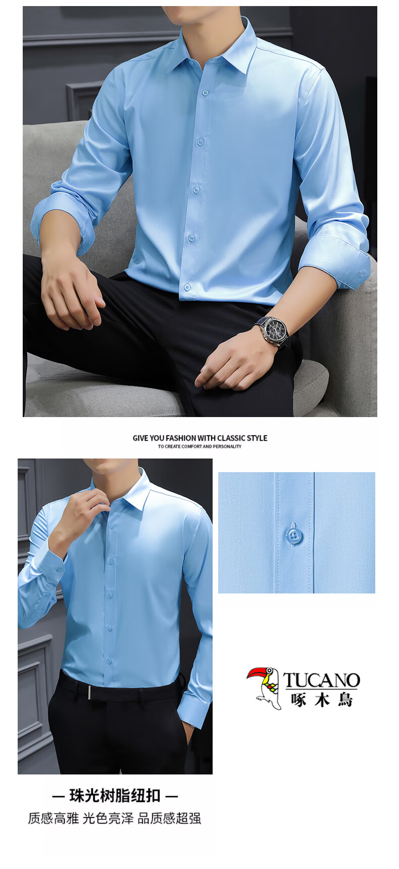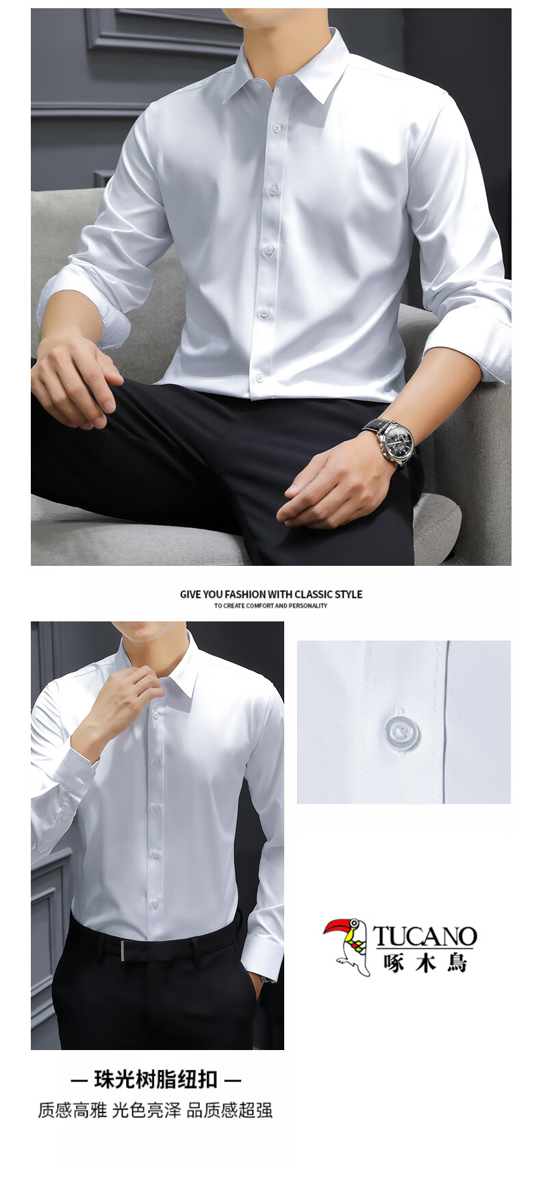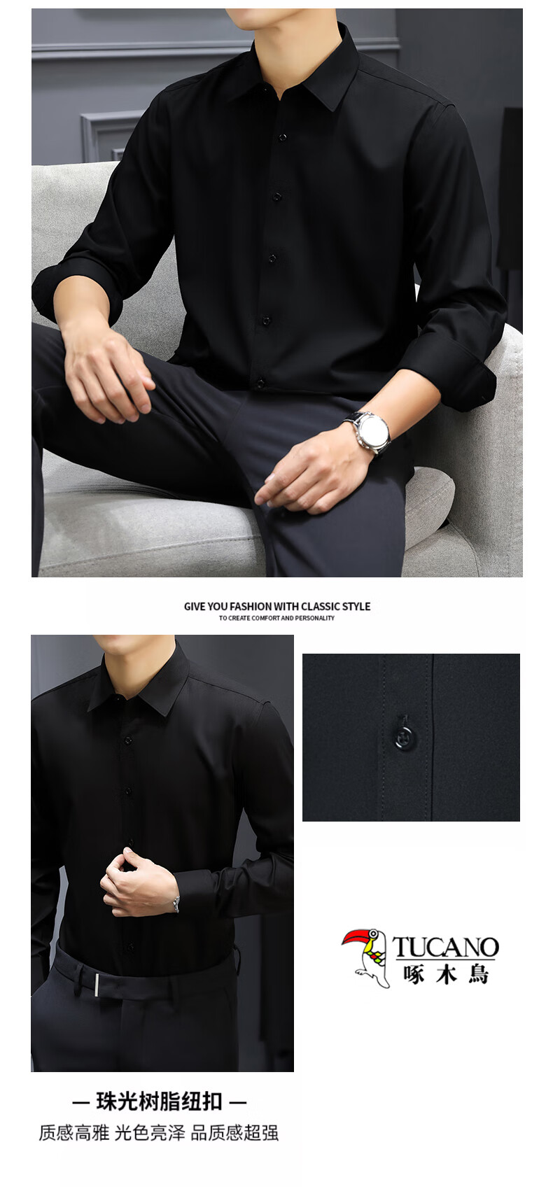 Woodpecker (TUCANO) shirt men's spring and autumn long shirt business formal wear fashion casual solid color versatile men's wear black 2XL