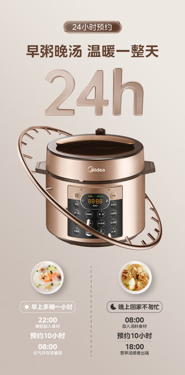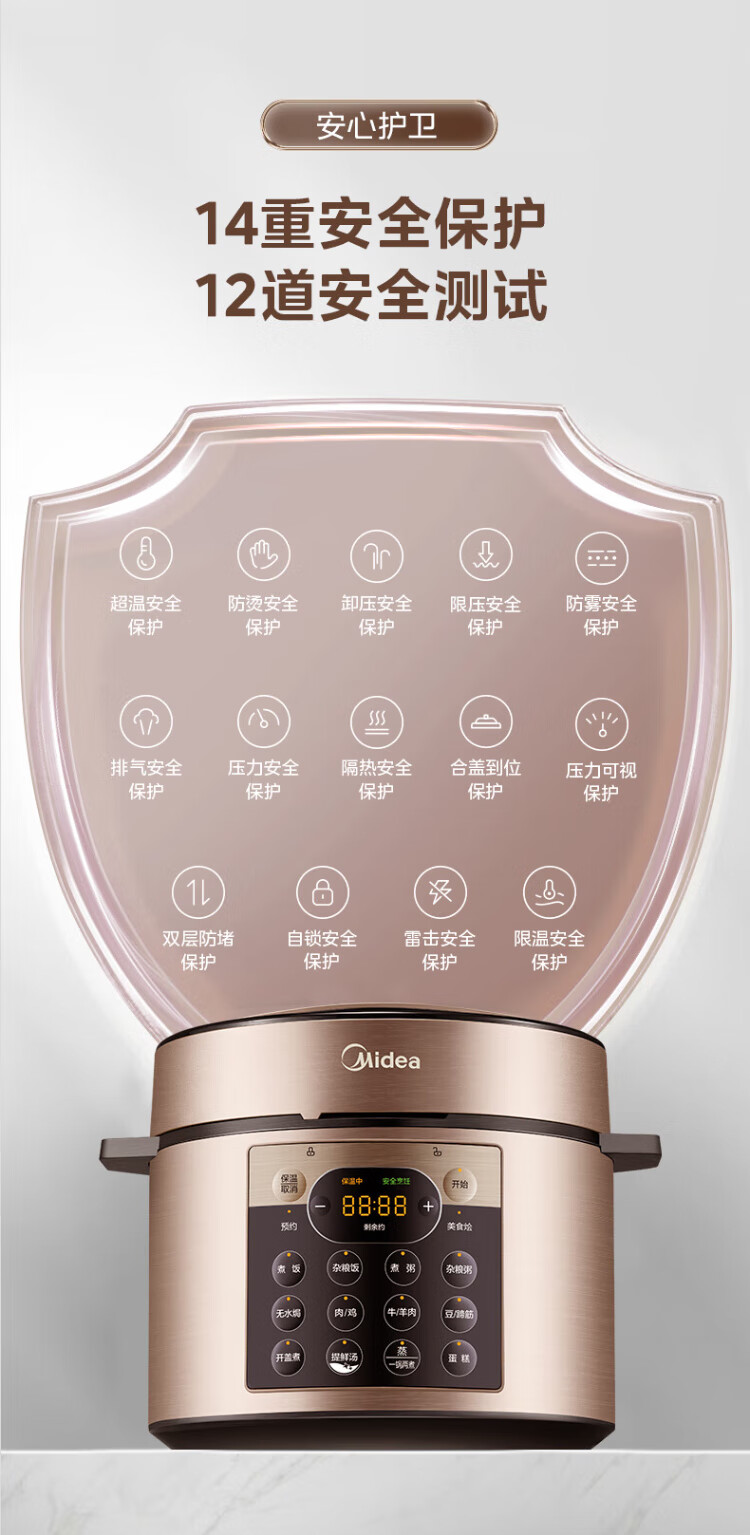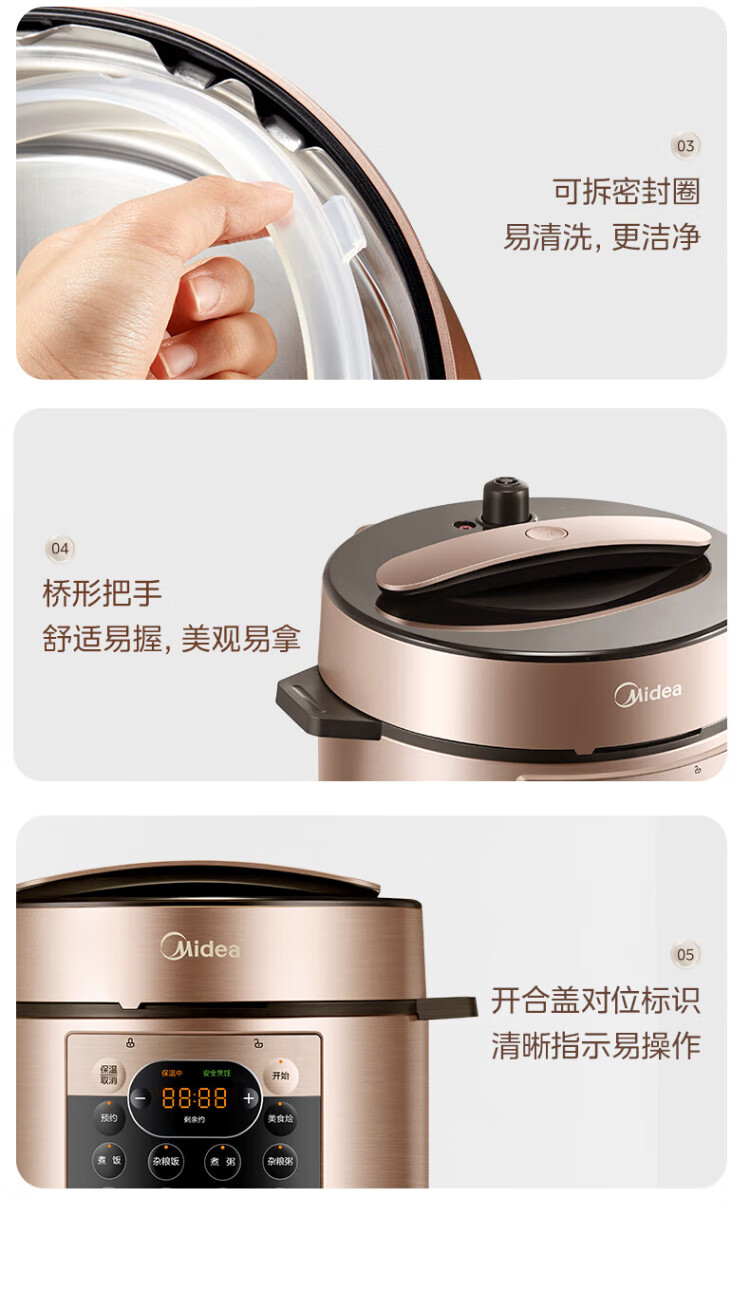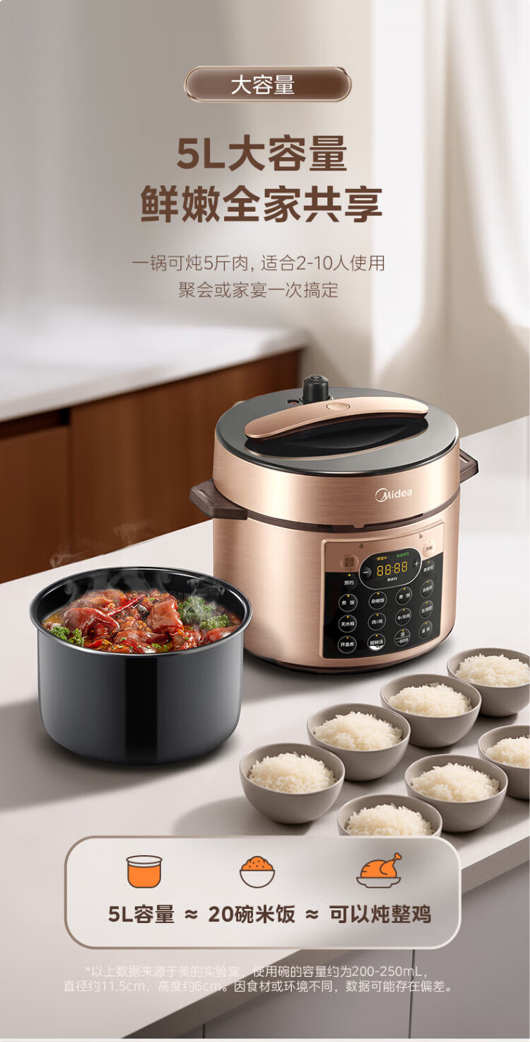 Midea National Subsidy Electric Pressure Cooker 5L Dual-gallon Fully Automatic Intelligent Reservation Home Rice Cooker Pressure Cooker for 4-6 People Soup Millet Porridge Open Cover Hot Pot YL50Q3-451