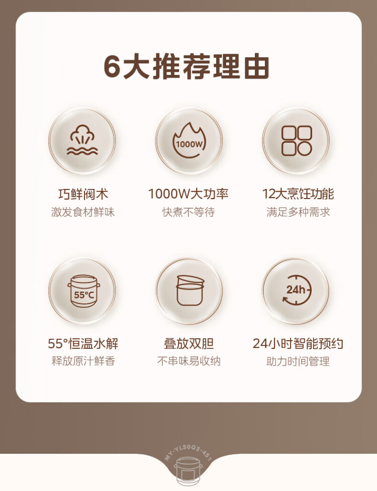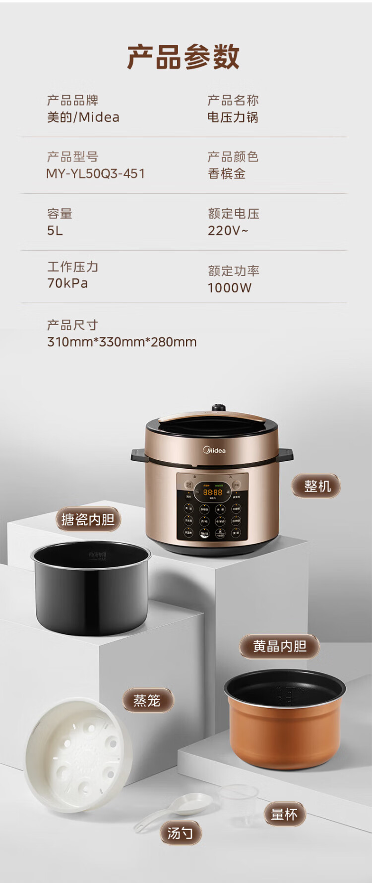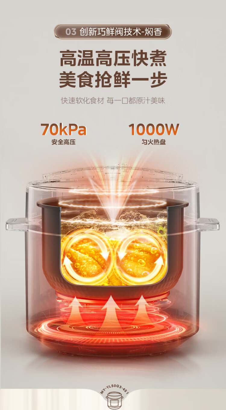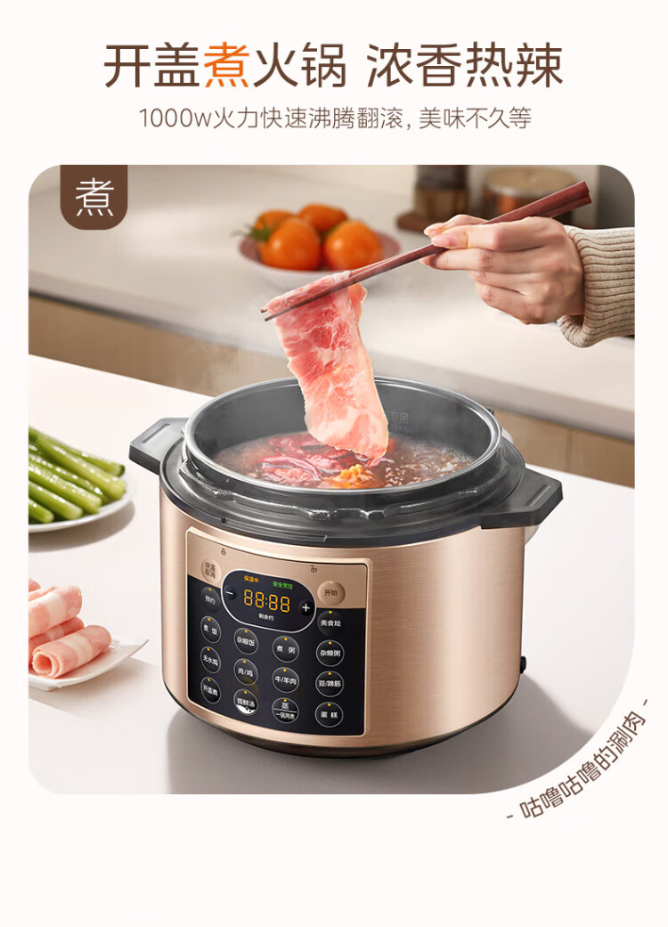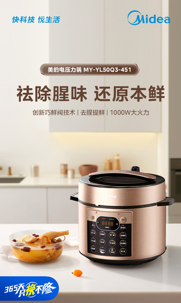 Midea National Subsidy Electric Pressure Cooker 5L Dual-gallon Fully Automatic Intelligent Reservation Home Rice Cooker Pressure Cooker for 4-6 People Soup Millet Porridge Open Cover Hot Pot YL50Q3-451