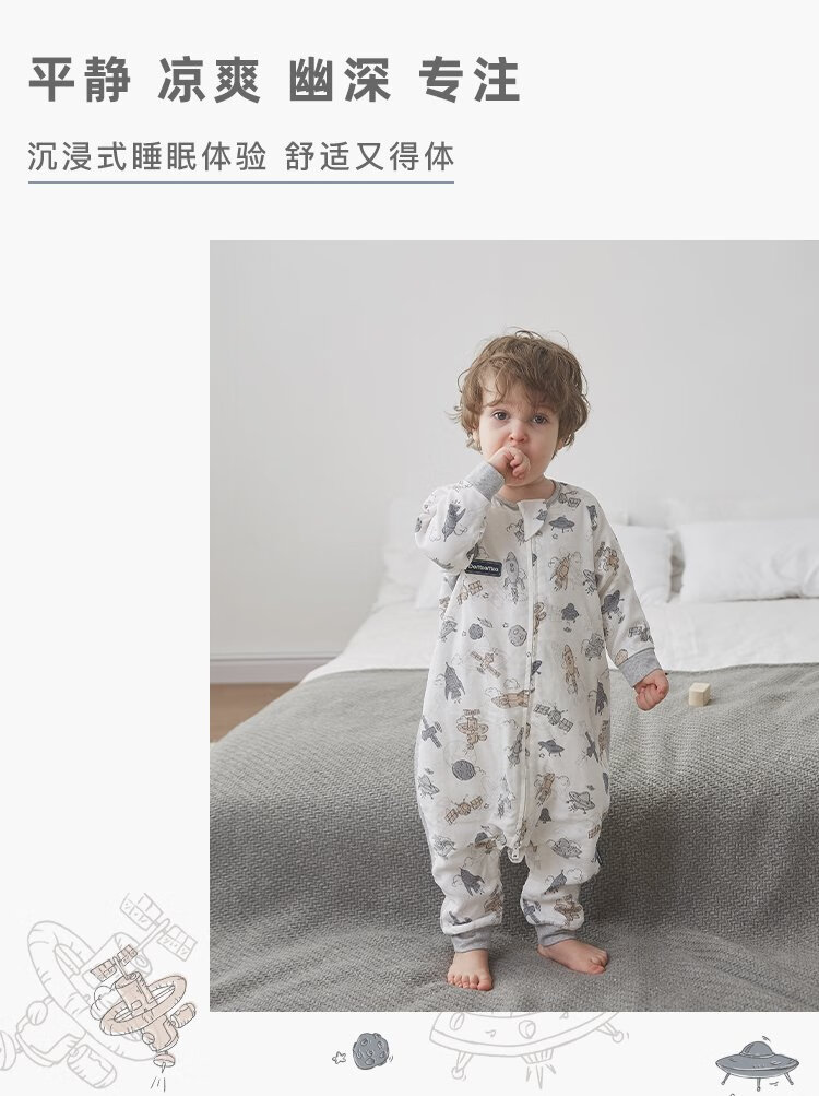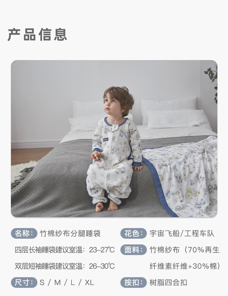 DOMIAMIA baby sleeping bag six-layer gauze split-leg sleeping bag baby sleeping bag children's anti-kick quilt long-sleeved one-piece pajamas four seasons L