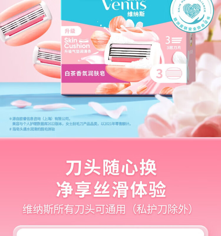 Gillette Venus Shaving Knife White Tea Knife Medium Dry 3-Blade Armpit Private Part Hair Removal Knife Special for Shaving Women