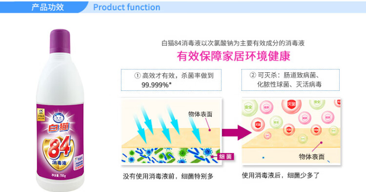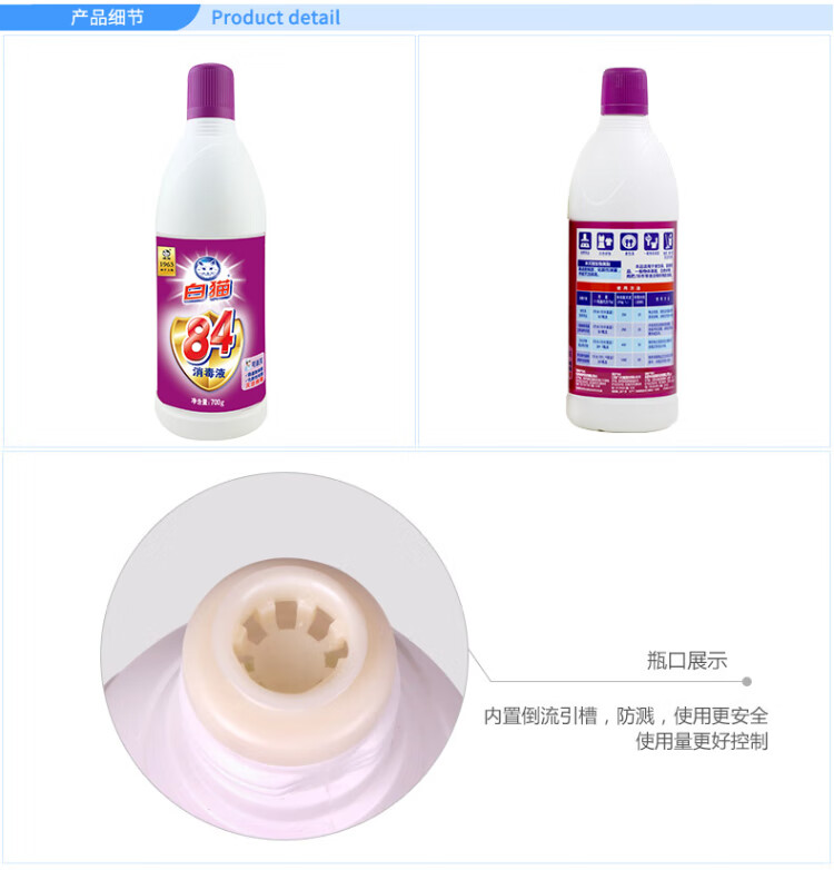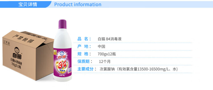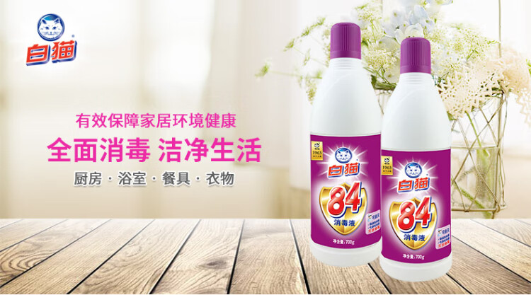 White Cat 84 Disinfectant 700g*12 Bottles (Full Box) Sterilization Household Cleaning Kitchen Bathroom Influenza A