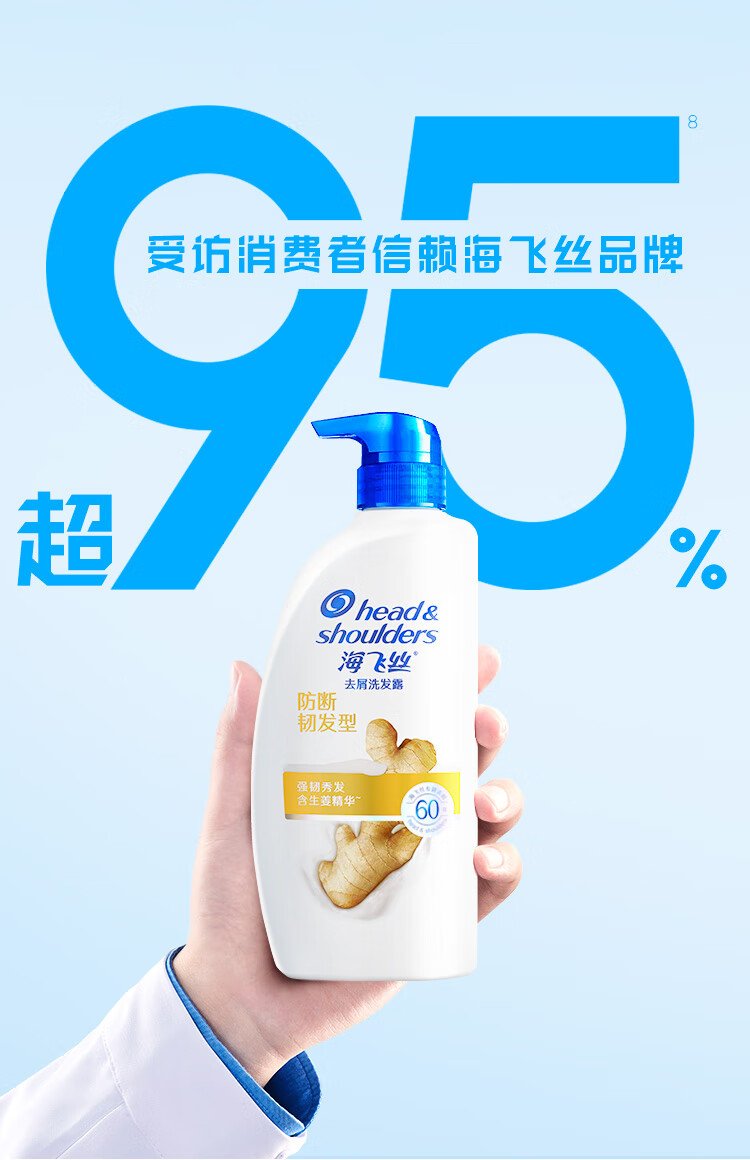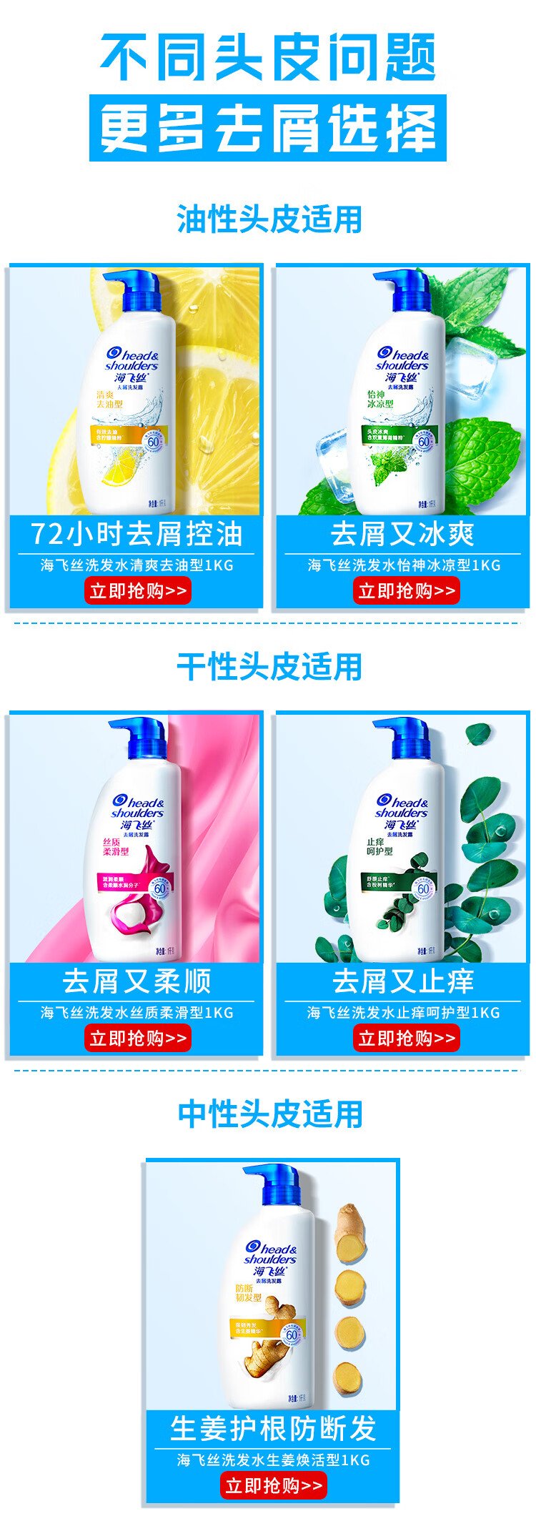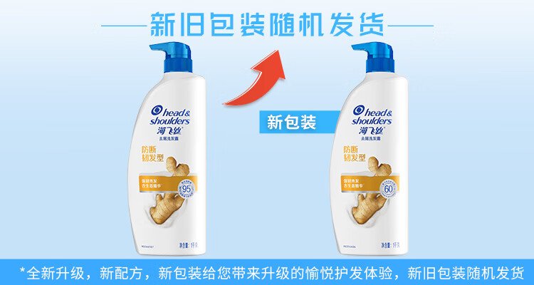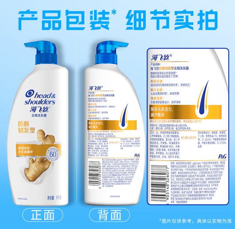 Head and Shoulders Ginger Shampoo, root protection, anti-breakage and tough hair 1KG, men's and women's shampoo, anti-dandruff, Liu Yuning's same style